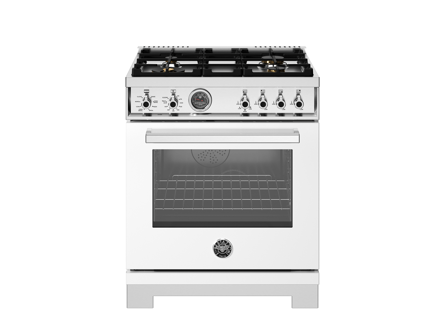 30 inch Dual Fuel Range, 4 Brass Burners, Electric Self-Clean Oven Bianco
