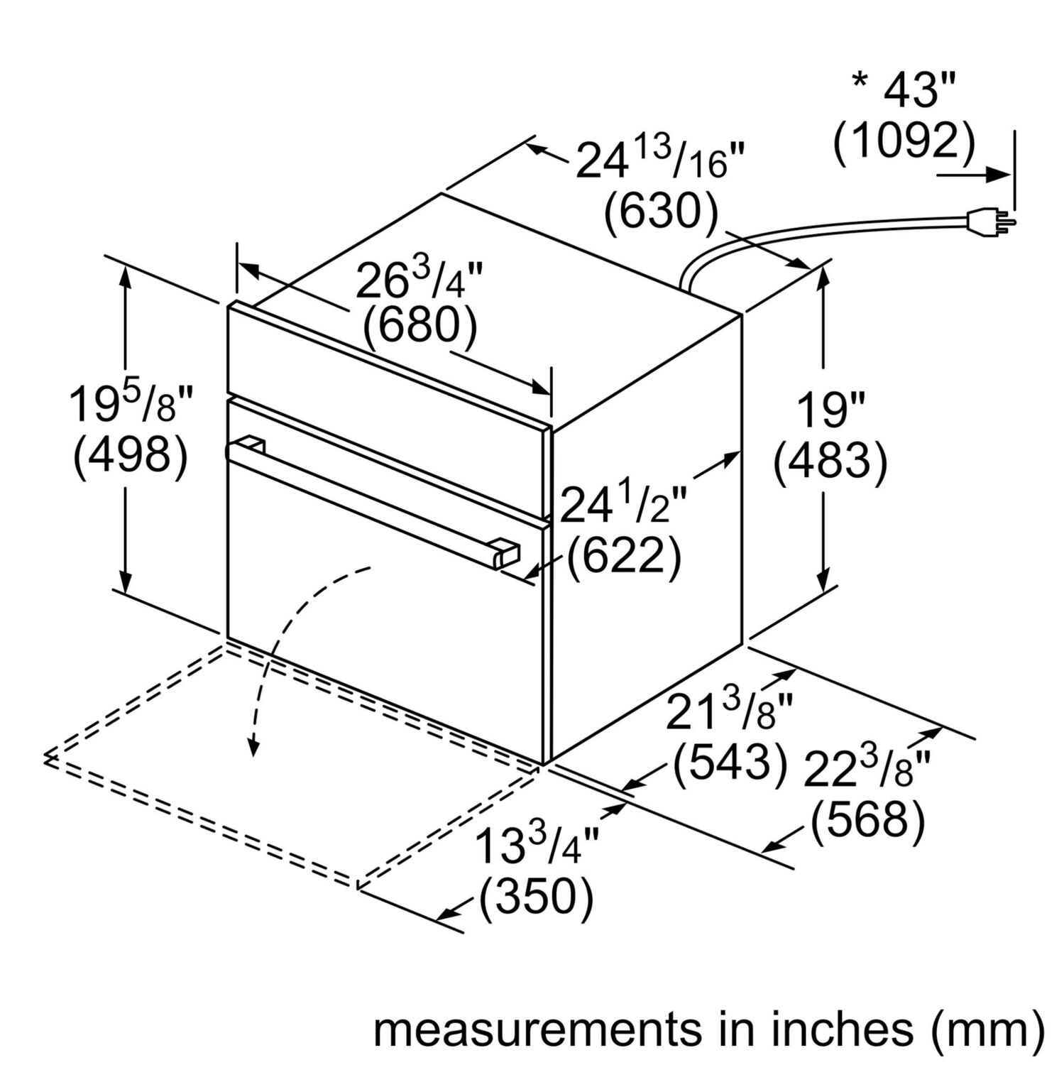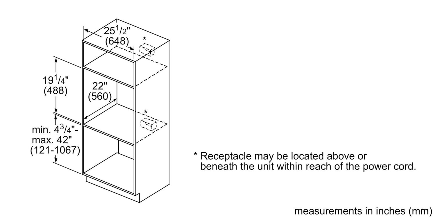| Required Cutout Size (HxWxD) (in) | 19 1/4'' x 25 1/2 x 22 |