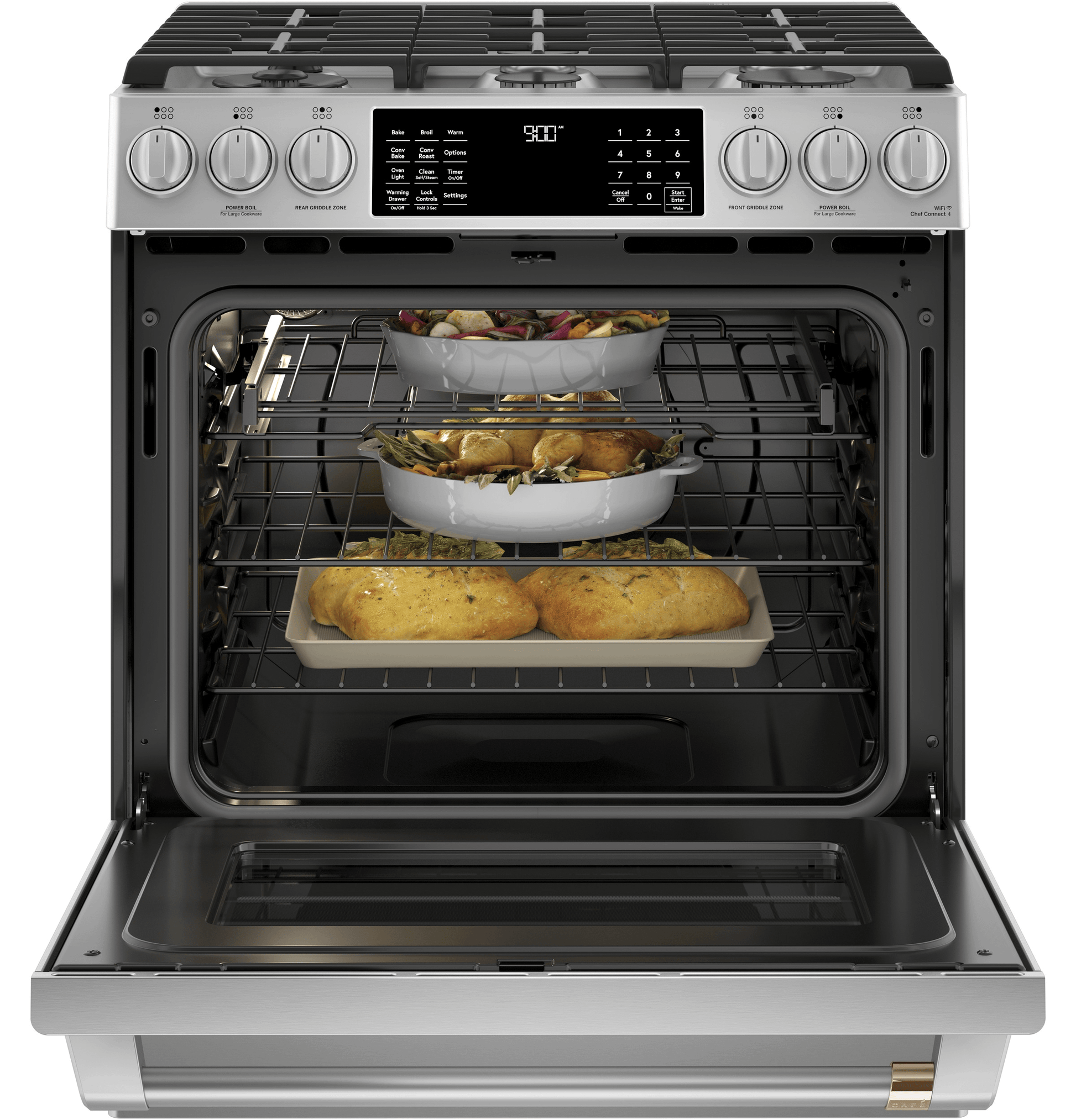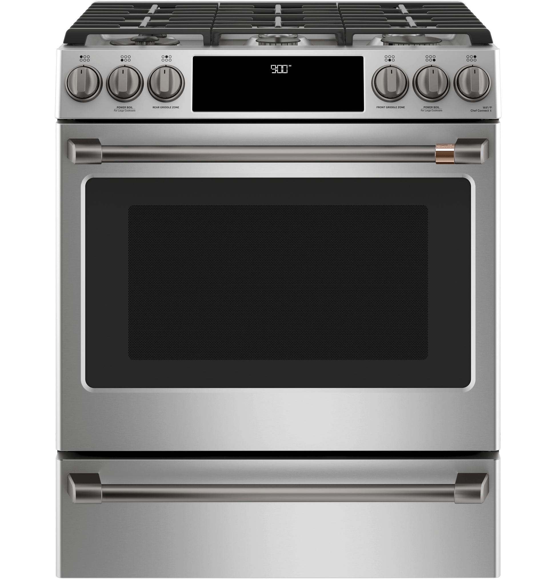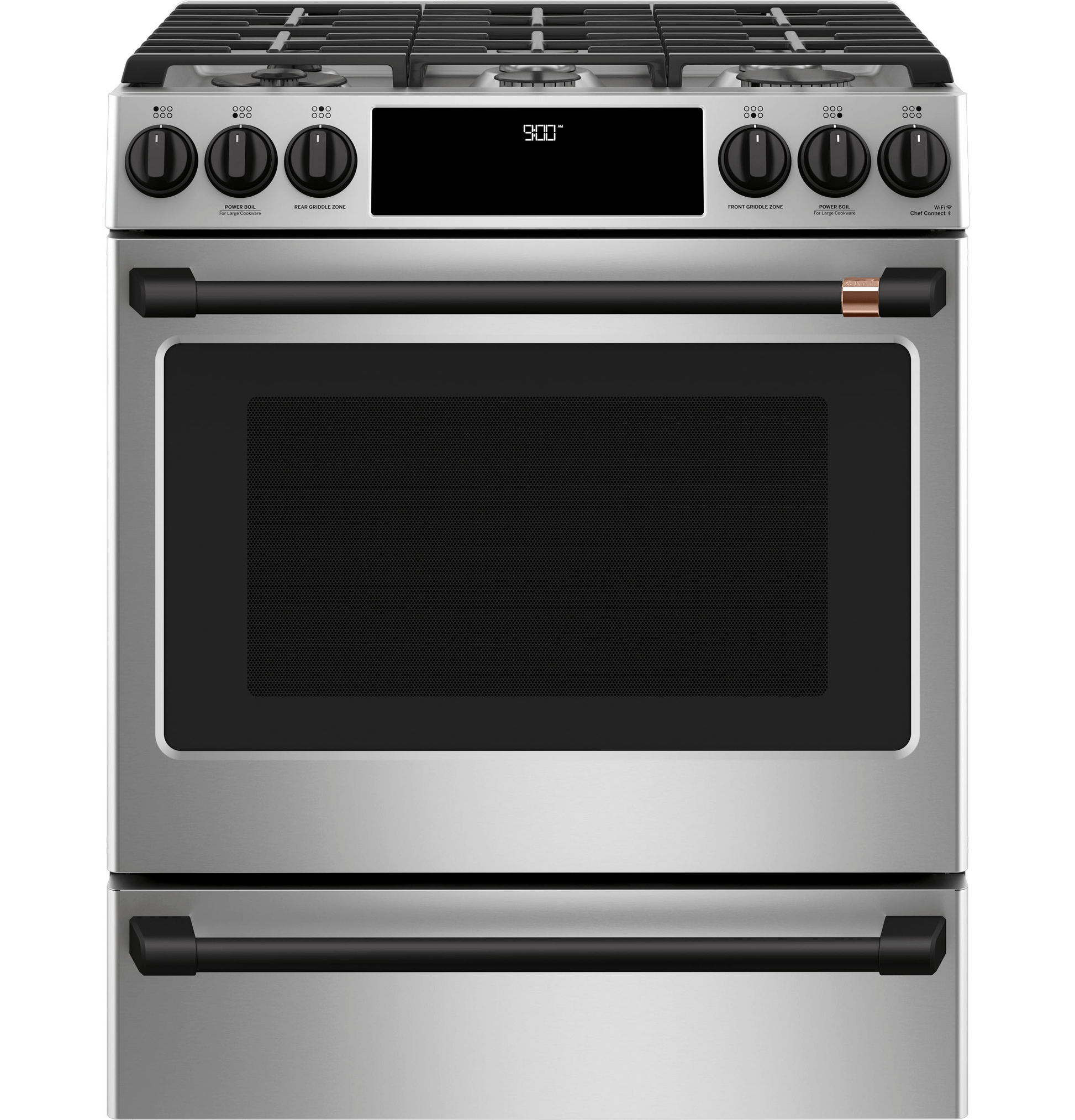 Café™ 30" Smart Slide-In, Front-Control, Dual-Fuel Range with Warming Drawer