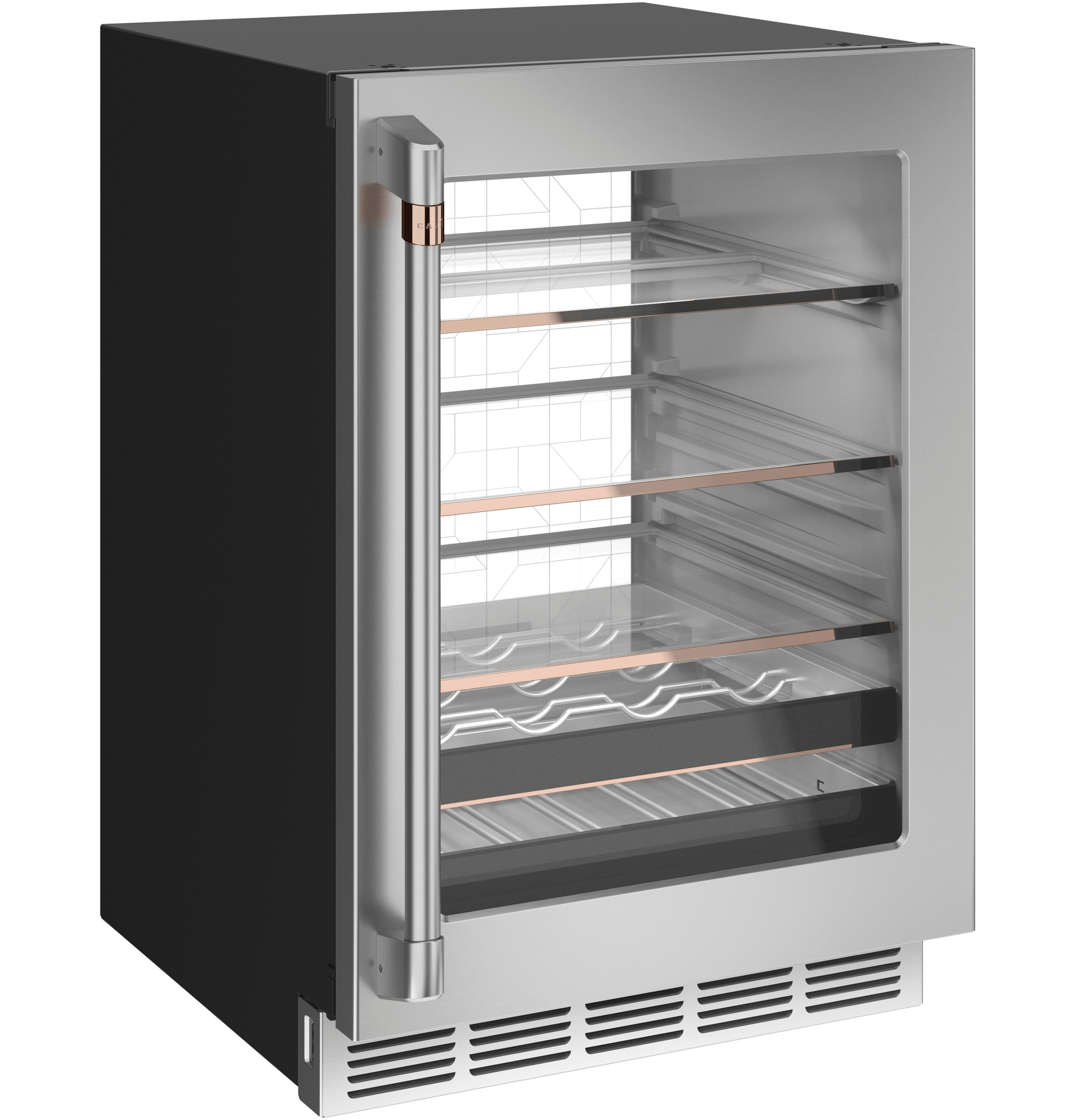 | Wine Racks | 2 Full-Extension, with Matte Black Fronts and Copper Accents |