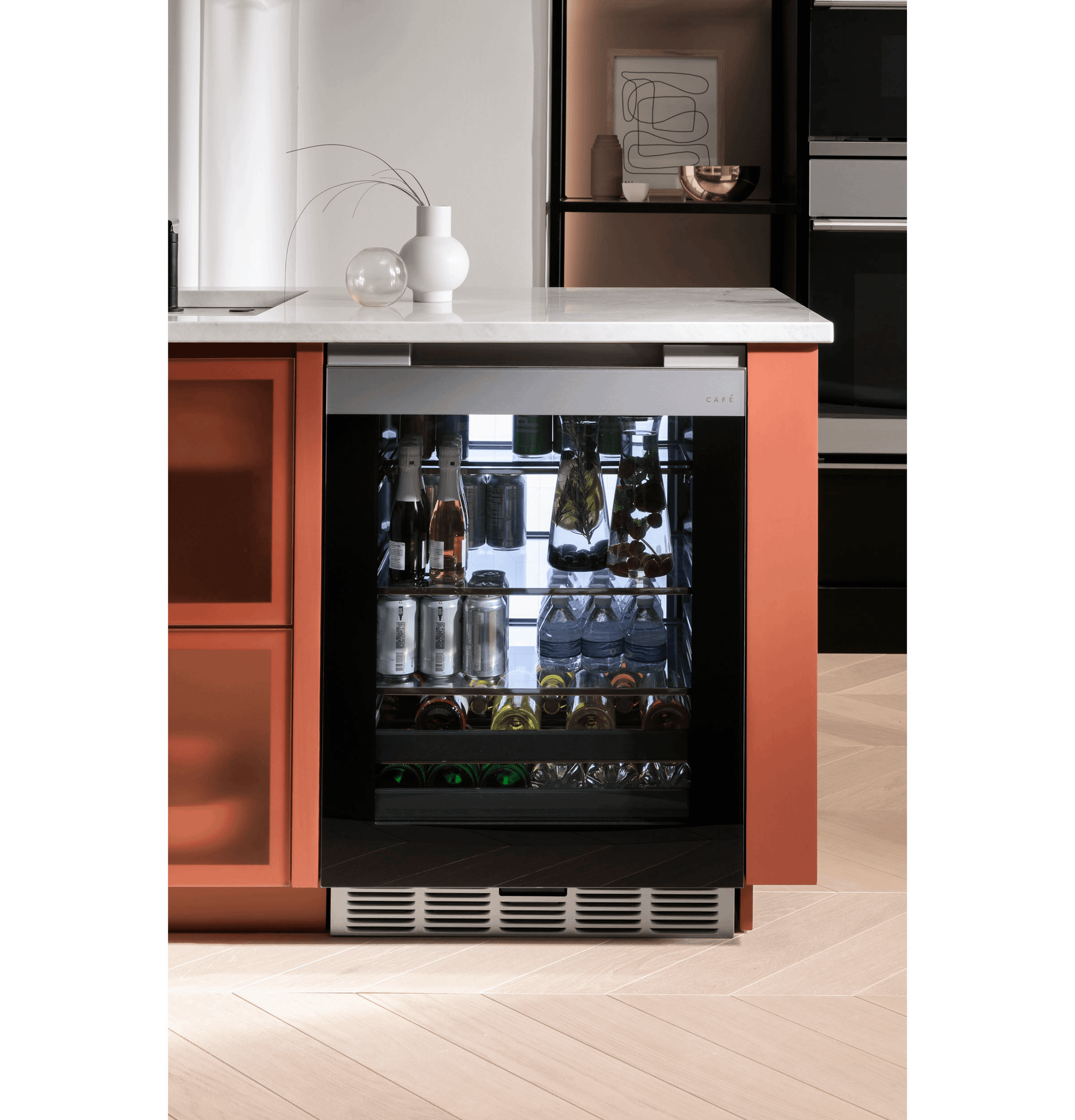- This beverage center has an attractive, easy-to-clean glass finish that will create a contemporary look in your kitchen