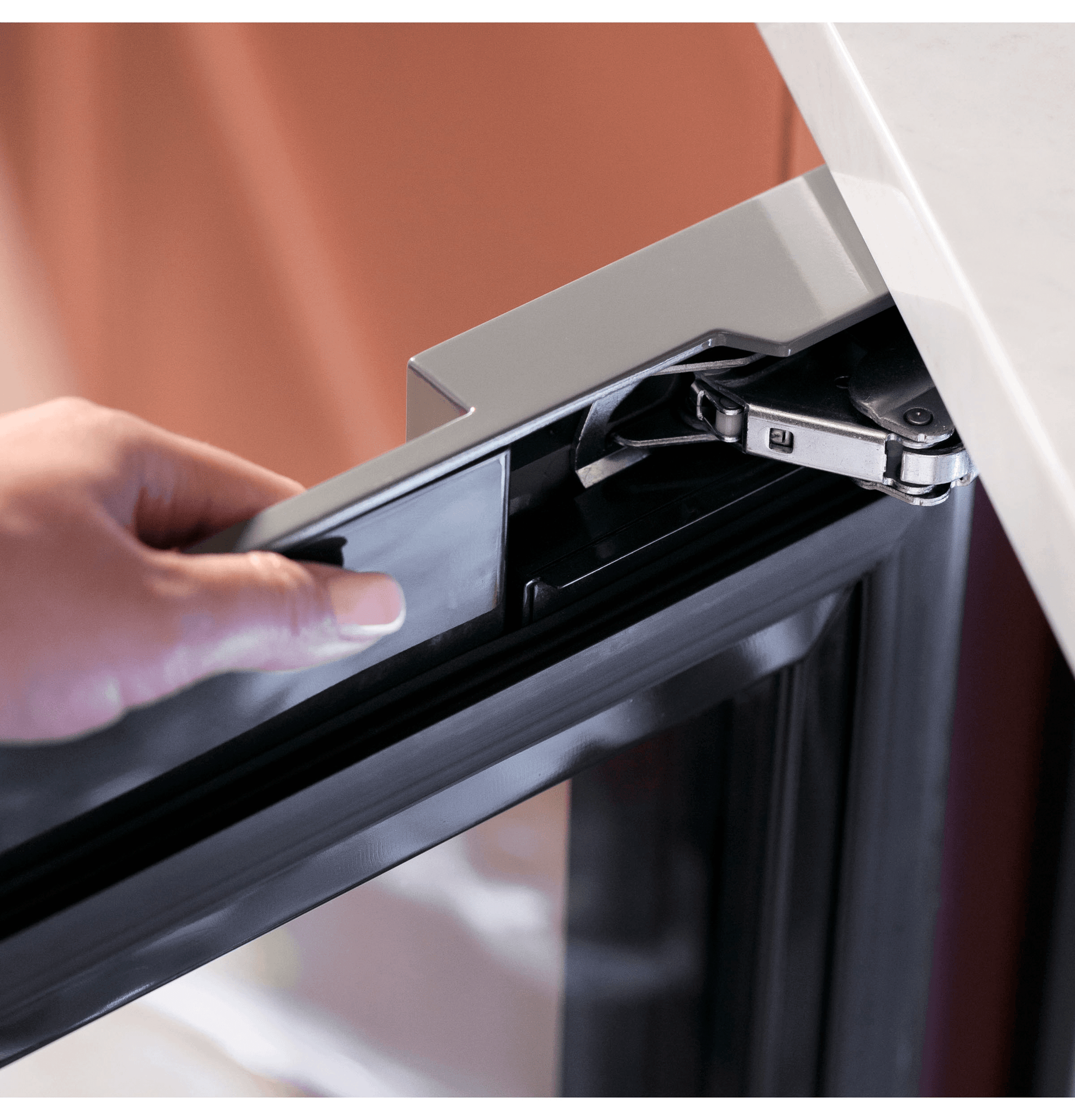 These hinges prevent the beverage center door from striking anything in the kitchen, including your cabinetry. They also help the door open smoothly and close softly