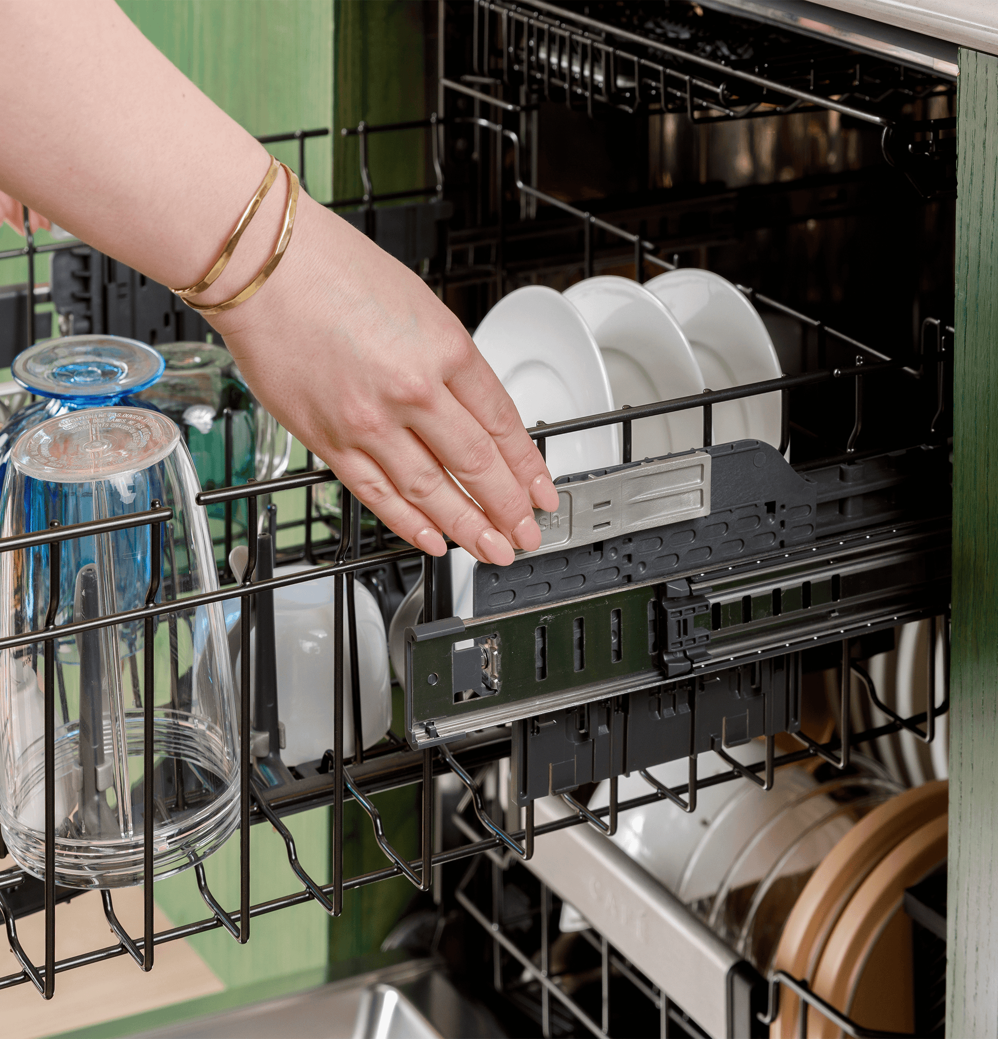 Load your dishwasher your way thanks to an adjustable middle rack. Easily move it up and down to fit bottles, large platters and other items as tall as 10.5".