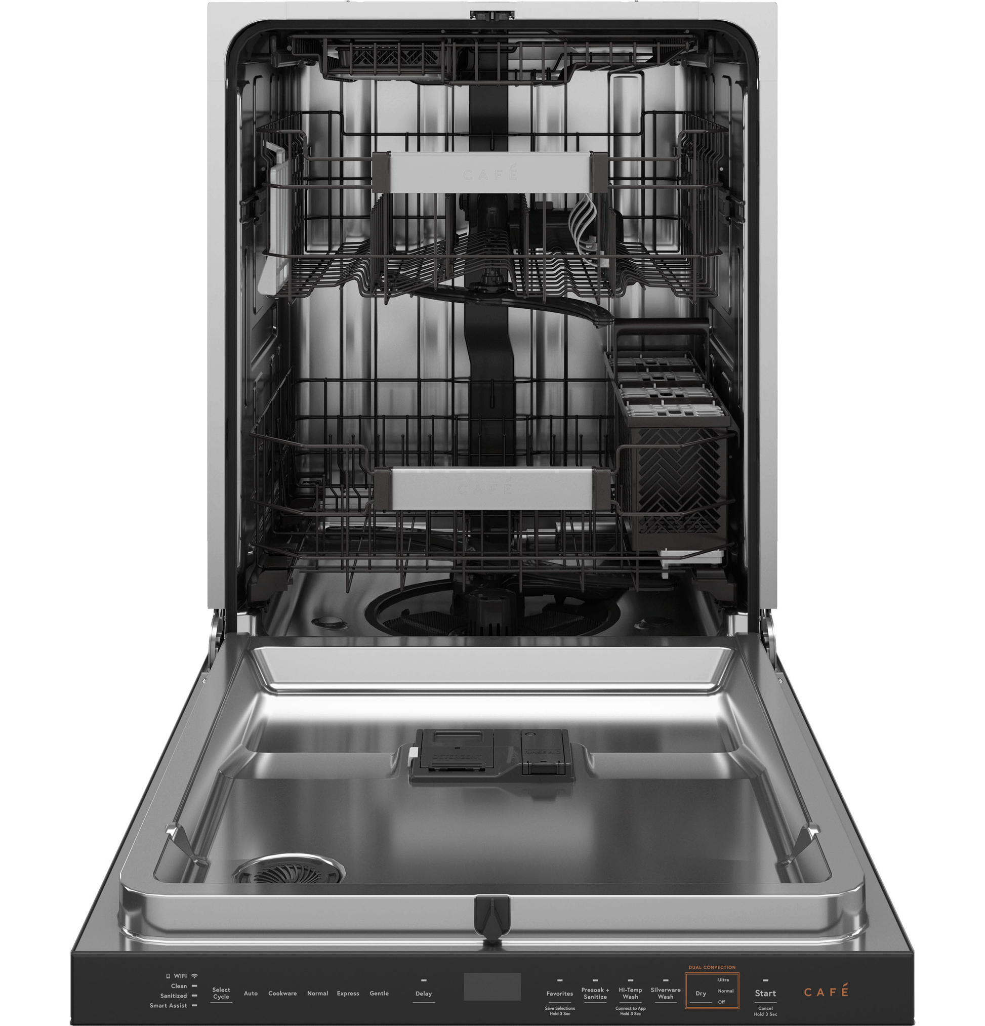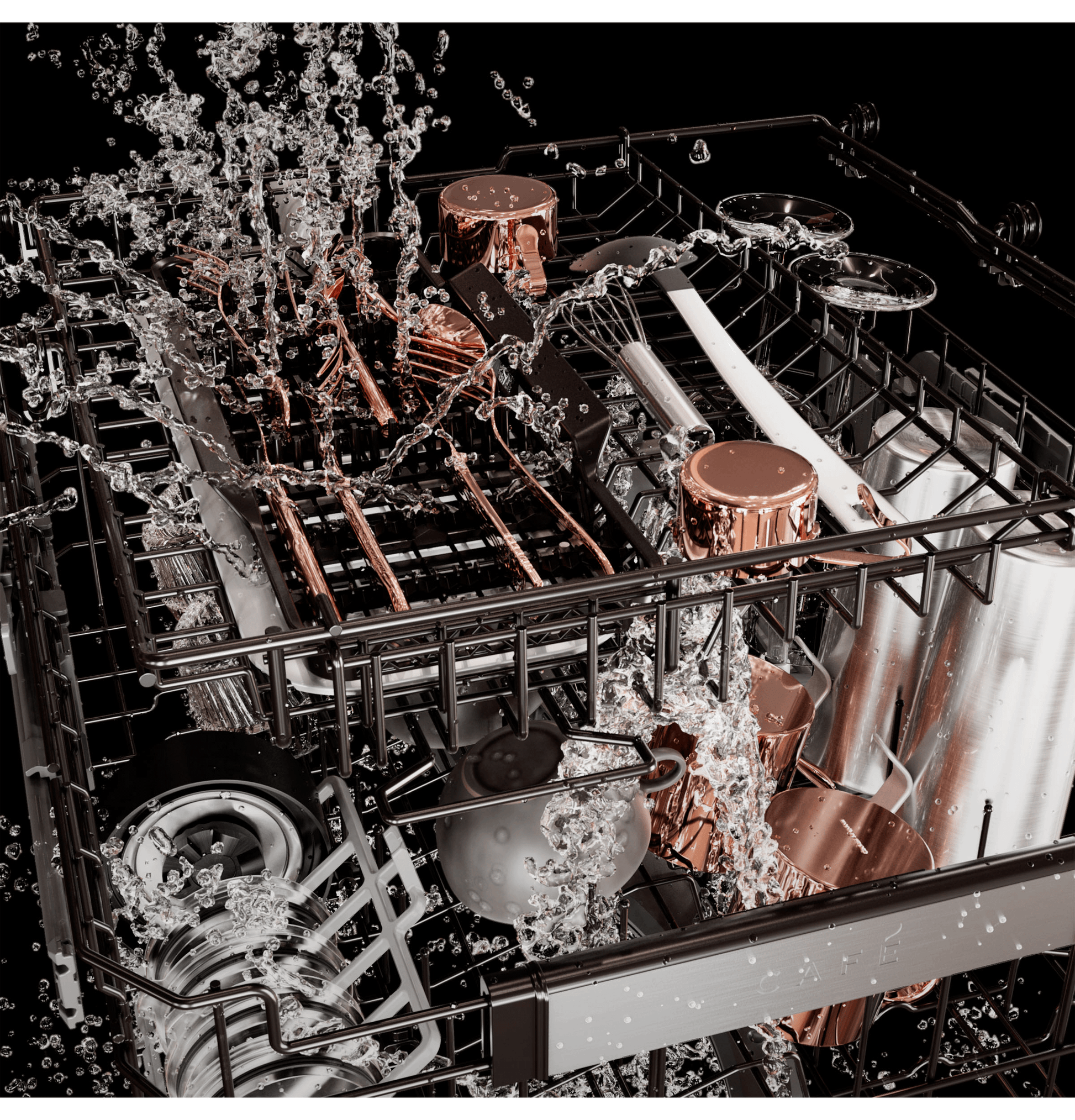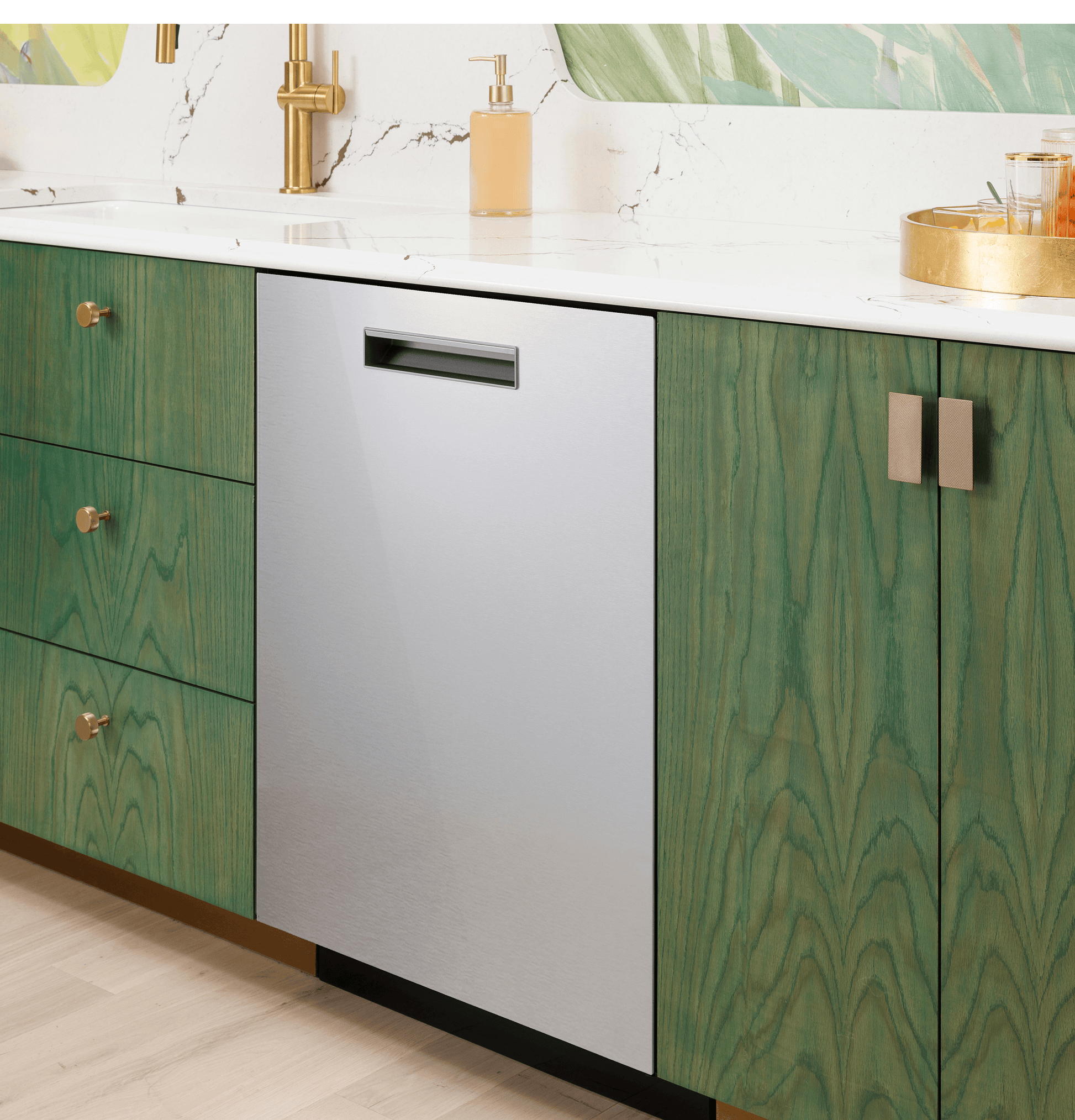 Café™ CustomFit ENERGY STAR Stainless Interior Smart Dishwasher with Ultra Wash Top Rack and Dual Convection Ultra Dry, LED Lights, 39 dBA in Platinum Glass