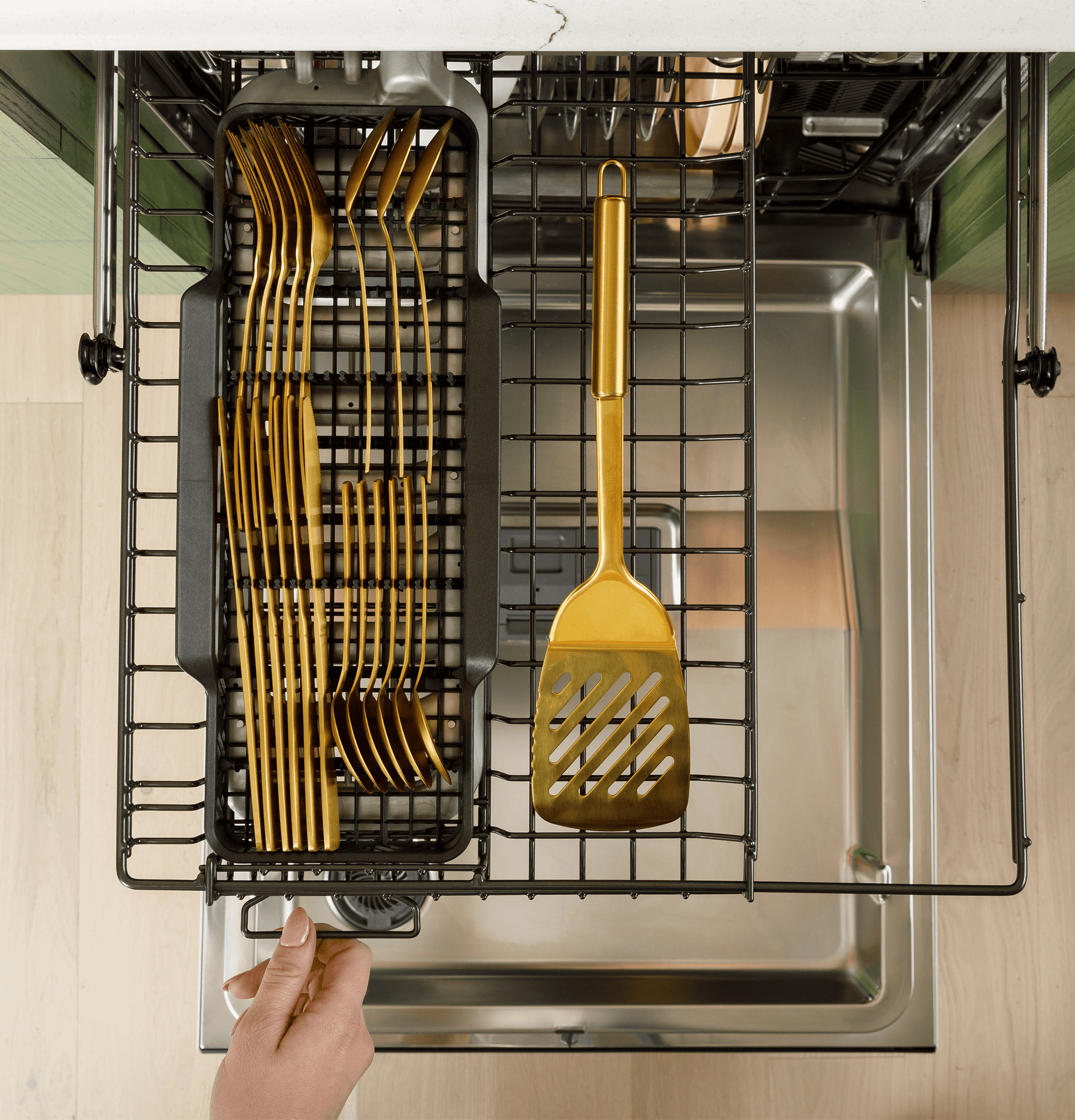 - Load more than just silverware in this flexible basket with dedicated wash jets below. The CustomFit Basket holds all your silverware, stemware and reusable straws, so items that were hand wash before can safely be washed in the dishwasher.