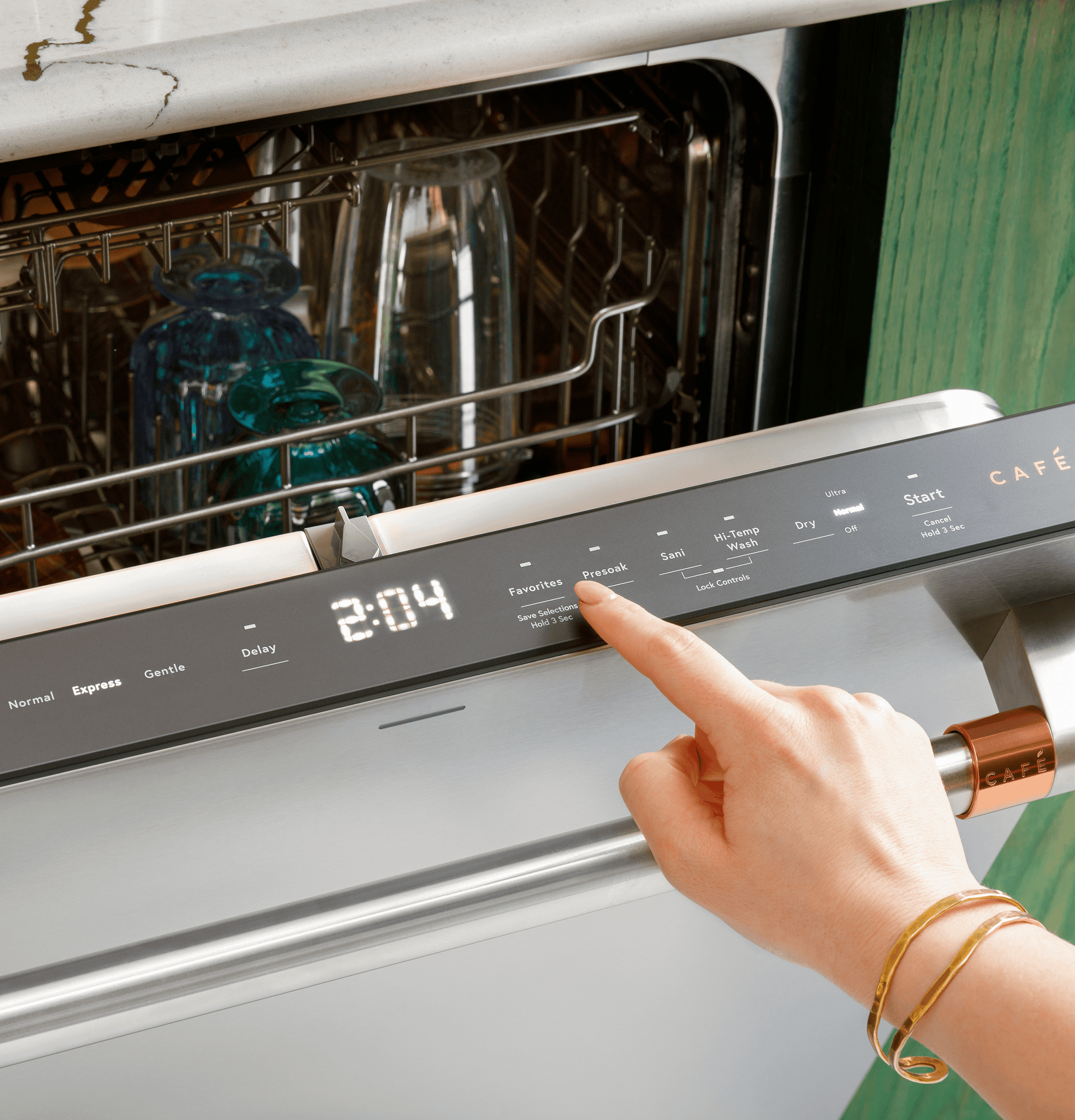 Choose from six unique Caf(eback) handle finishes to complement the rest of your kitchen thanks to this dishwasher with customizable hardware.