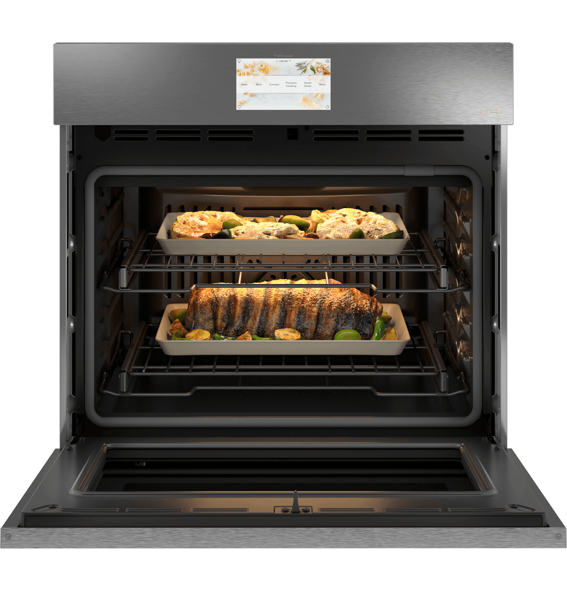 - Check status from anywhere without opening the oven door with live streaming video of your food on your smartphone
