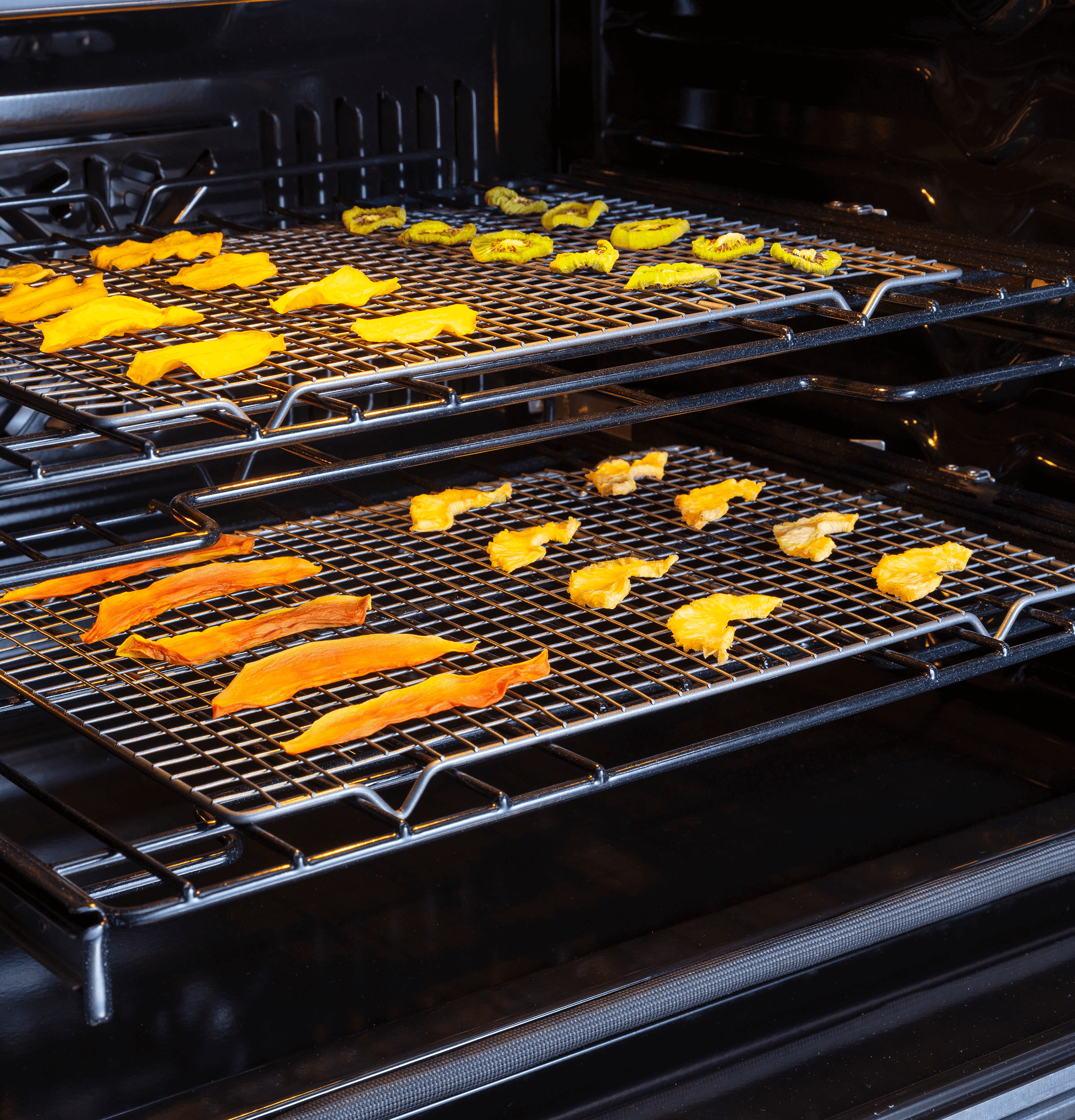 Make homemade chips, spices and dehydrated fruits more easily than ever with a moisture-removing setting in your oven