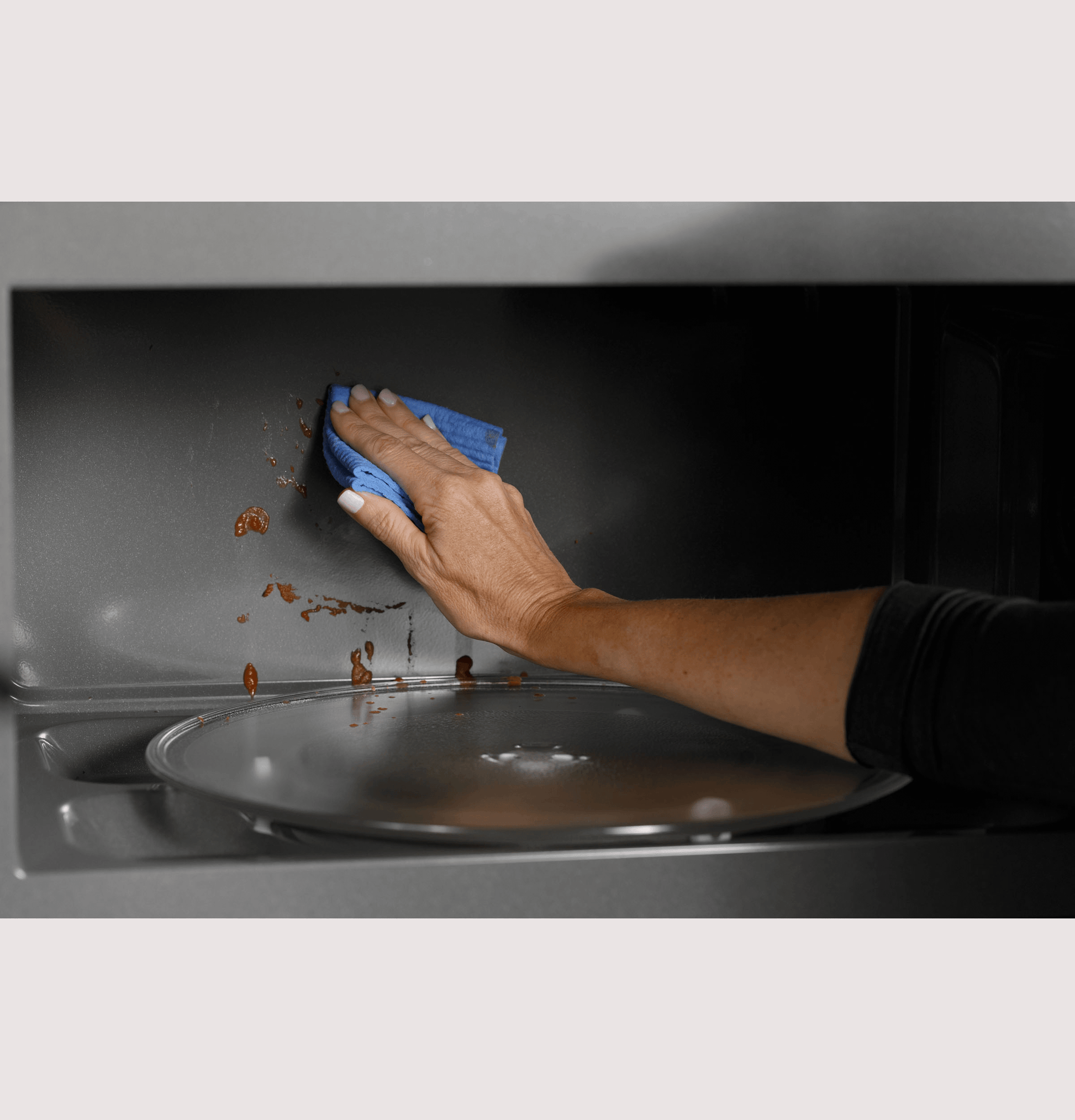This steam clean microwave makes it easy to wipe away splatters, thanks to a special setting that heats water to the ideal temperature for creating steam, which loosens stuck-on messes.