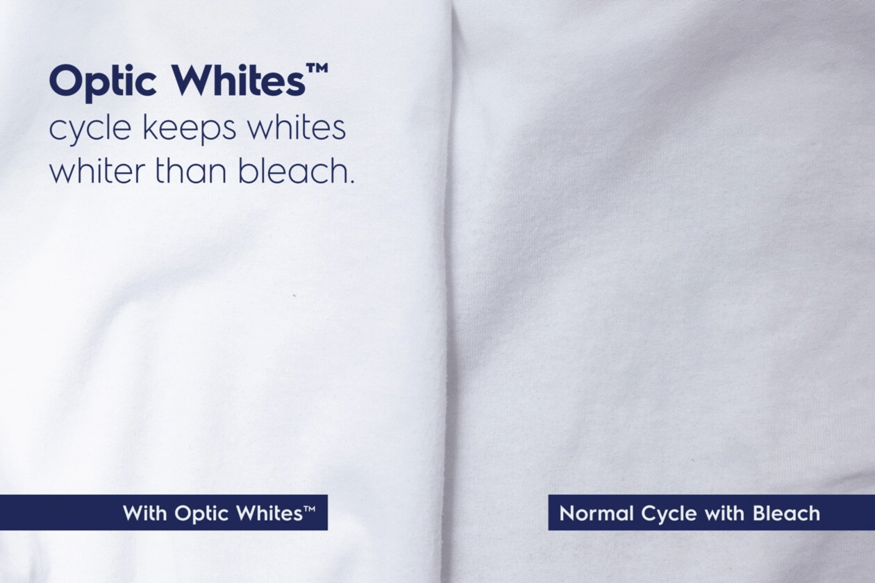 - Optic Whites(TM) cycle keeps whites whiter than bleach