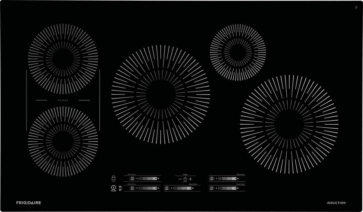 The Frigidaire Induction 36" Cooktop helps make cleaning easier than ever since induction heats the cooking surface and not the area around it, spills won't burn on. Plus, induction offers amazingly fast results helping make mealtime easier. Our convenient bridge element allows you to connect two elements allowing for simultaneous control, perfect for a griddle pan.