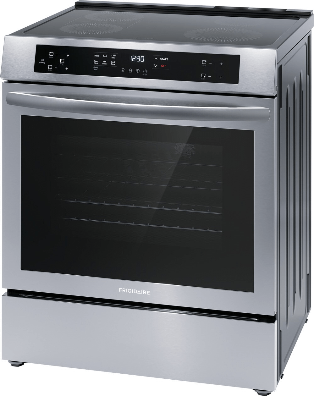 The Frigidaire 30" Induction Front Control Freestanding with Convection Bake allows you to achieve consistent baking results, faster. Plus no cooktop is easier to clean than induction, since induction heats the pan and not the cooktop around it, spills wipe up more easily. Also, you can get dinner on the table faster with the induction cooktop, which boils water 50% faster than gas and electric.
