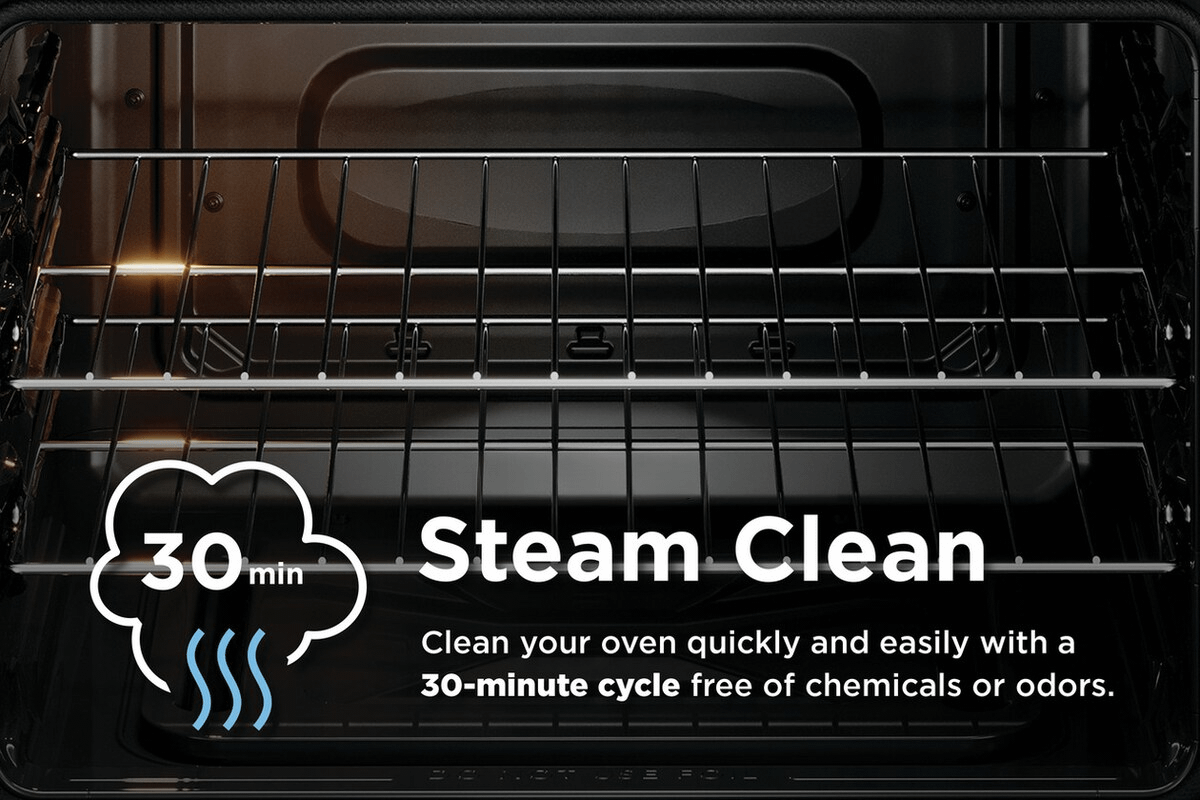 The Frigidaire 30" Gas Range with Quick Boil allows you to experience faster boil times with the 18,000 BTU Quick Boil burner and our flexible five burner cooktop was designed to fit all your cooking needs. For easier cleanup, our Steam Clean cycle provides a quick 30-minute oven cleaning that's chemical-free, odor-free and fast.
