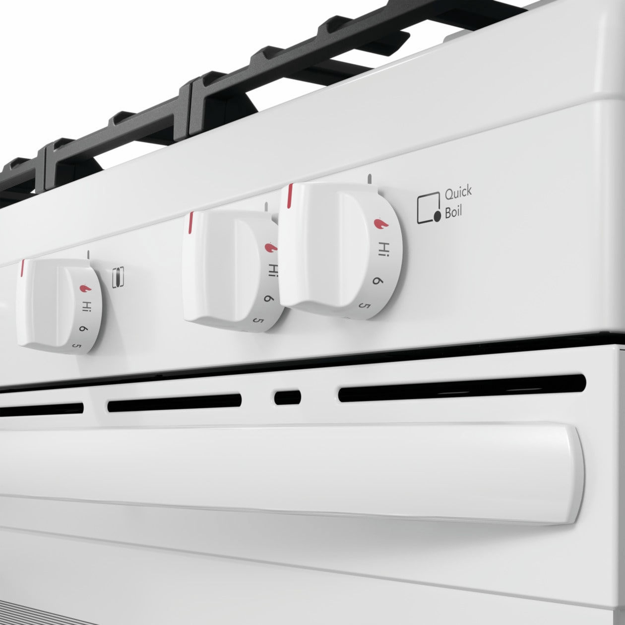 - Moving heavy pots and pans across the cooktop is easier with continuous edge-to-edge grates.