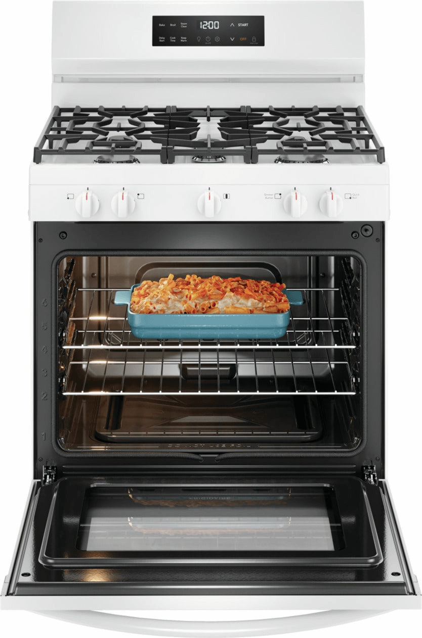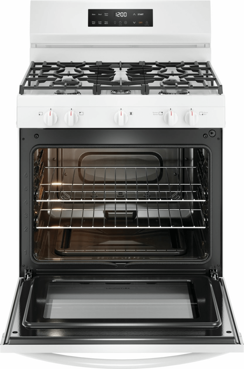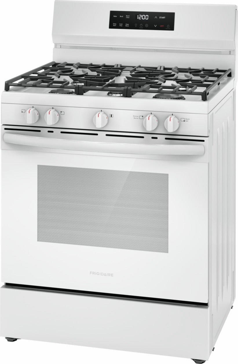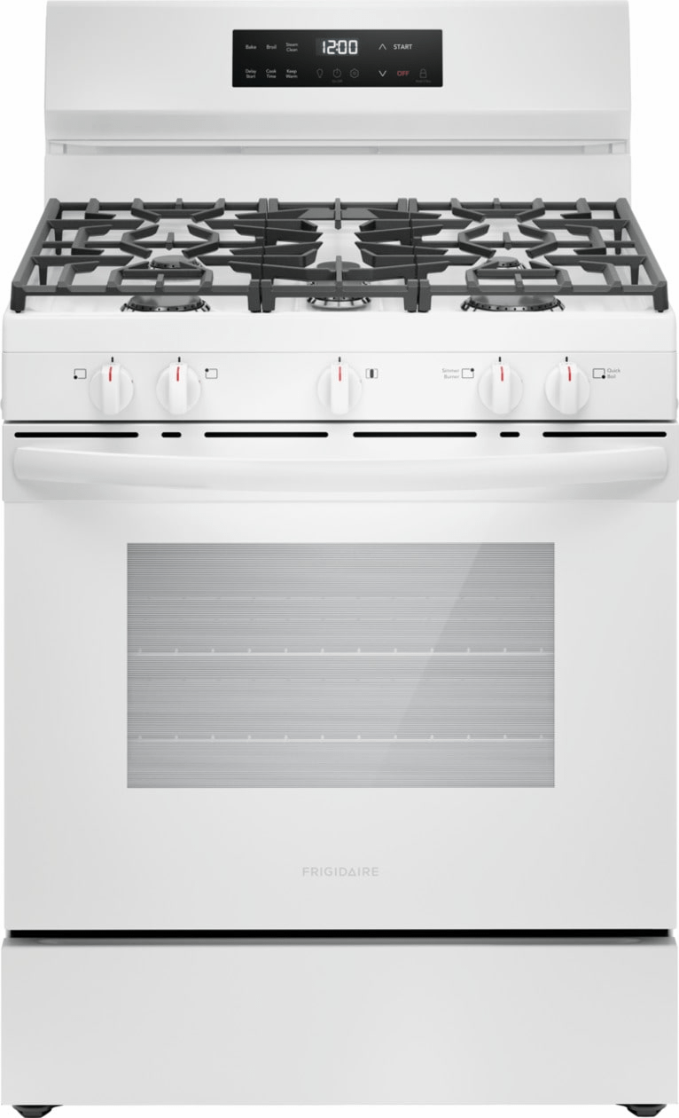 The Frigidaire 30" Gas Range with Quick Boil allows you to experience faster boil times with the 18,000 BTU Quick Boil burner and our flexible five burner cooktop was designed to fit all your cooking needs. For easier cleanup, our Steam Clean cycle provides a quick 30-minute oven cleaning that's chemical-free, odor-free and fast.