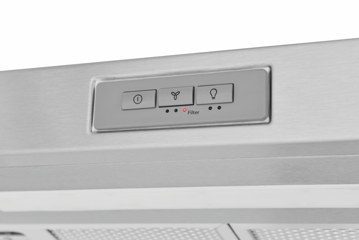 The Frigidaire Undercabinet 30" Ventilation Hood features a filter indicator light that reminds you when it's time to replace your carbon charcoal filter to continue capturing odors and circulating fresher air. Also offers LED lighting that illuminates the cooktop, soft touch controls that make selecting fan and lighting options easier, and the dual speed fan that recirculates air at 220 CFM.