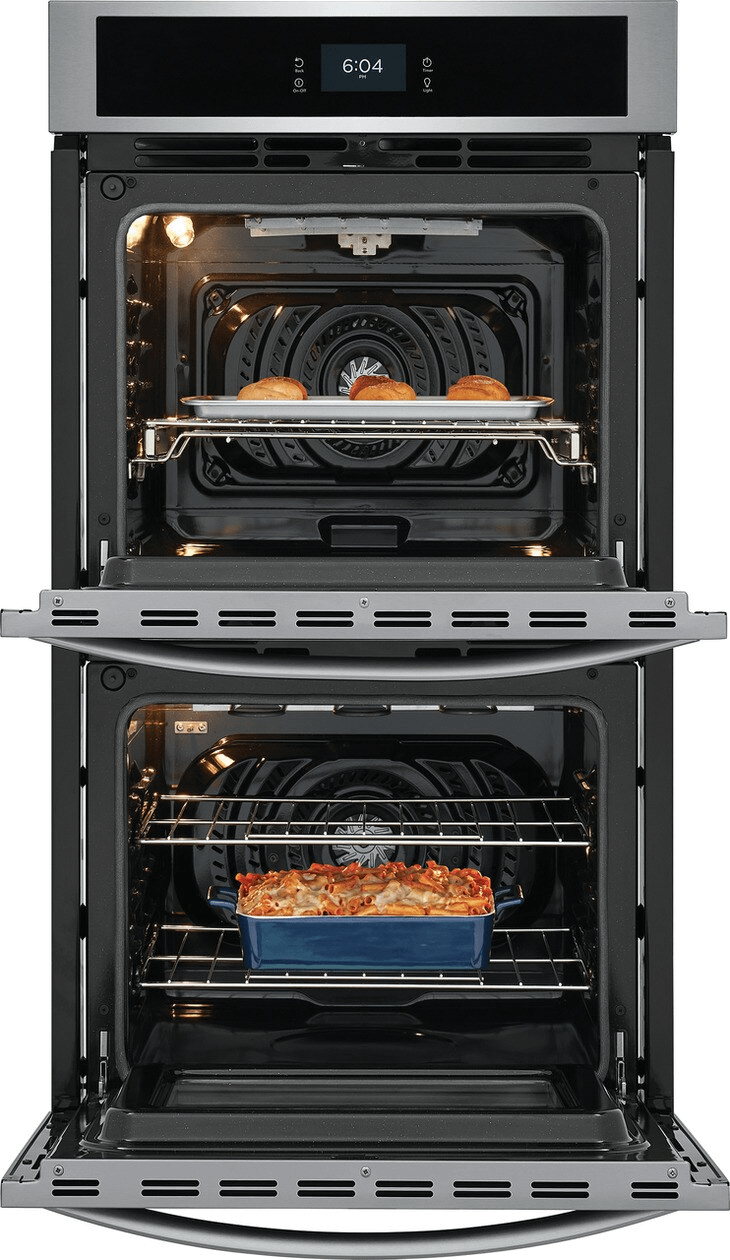 The Frigidaire 27" Double Wall Oven with Fan Convection allows you to achieve faster, more even multi-rack baking results. Plus, it features a premium touch screen digital control panel and provides peace of mind that it will fit existing cutouts with our Frigidaire Fit Promise.