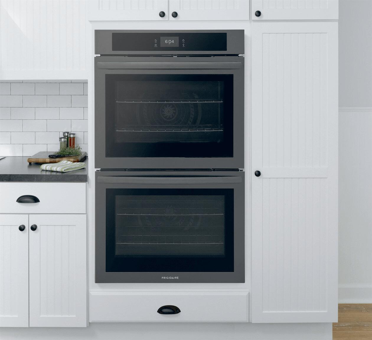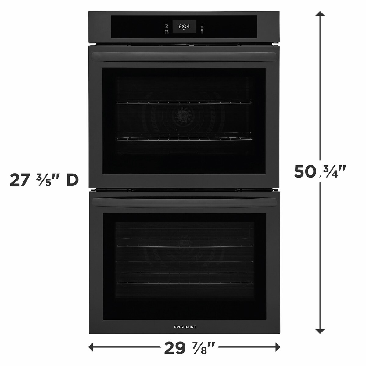 The Frigidaire 30" Double Wall Oven with Fan Convection allows you to achieve faster, more even multi-rack baking results, and has a total oven capacity of 10.6 cu. ft. It also features a premium touch screen digital control panel and provides peace of mind that it will fit existing cutouts with our Frigidaire Fit Promise.
