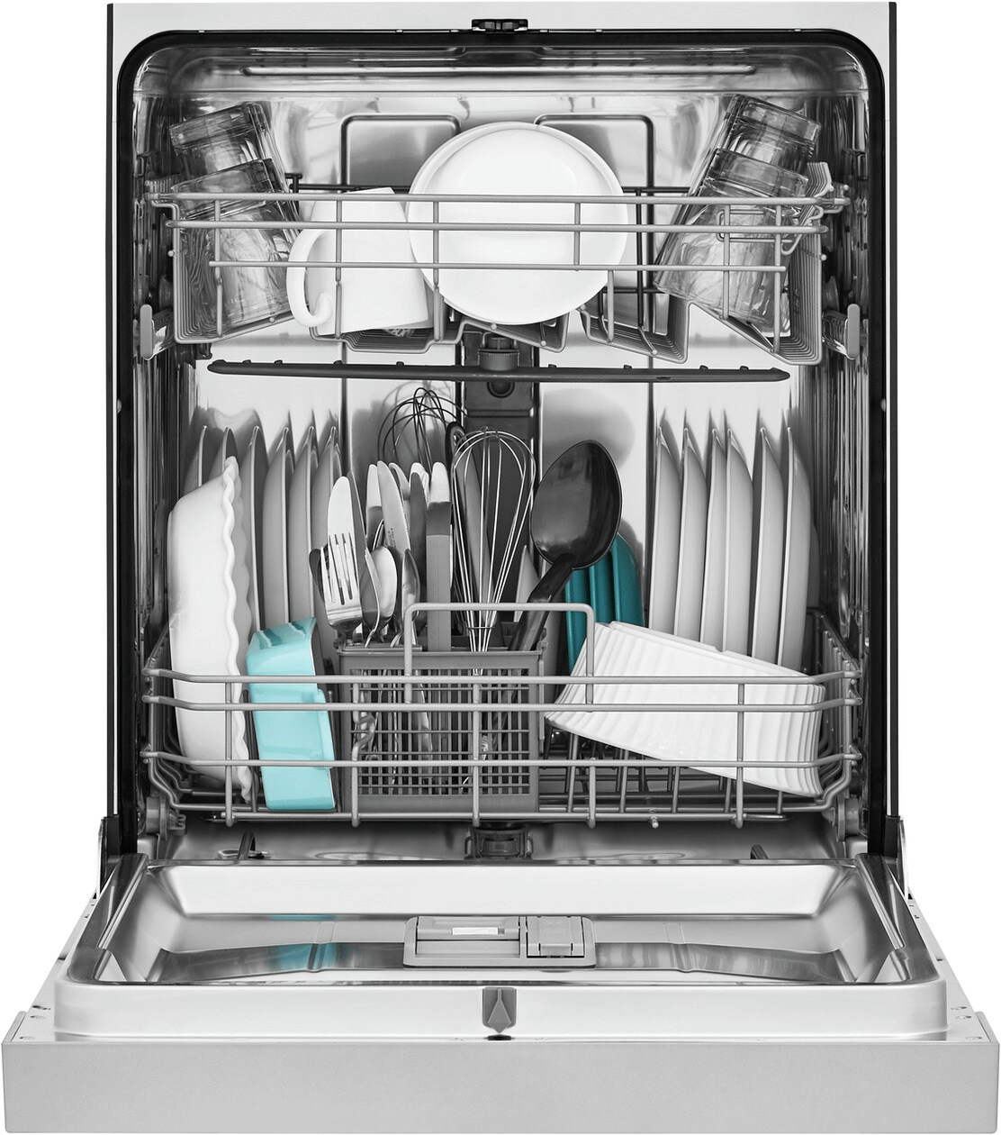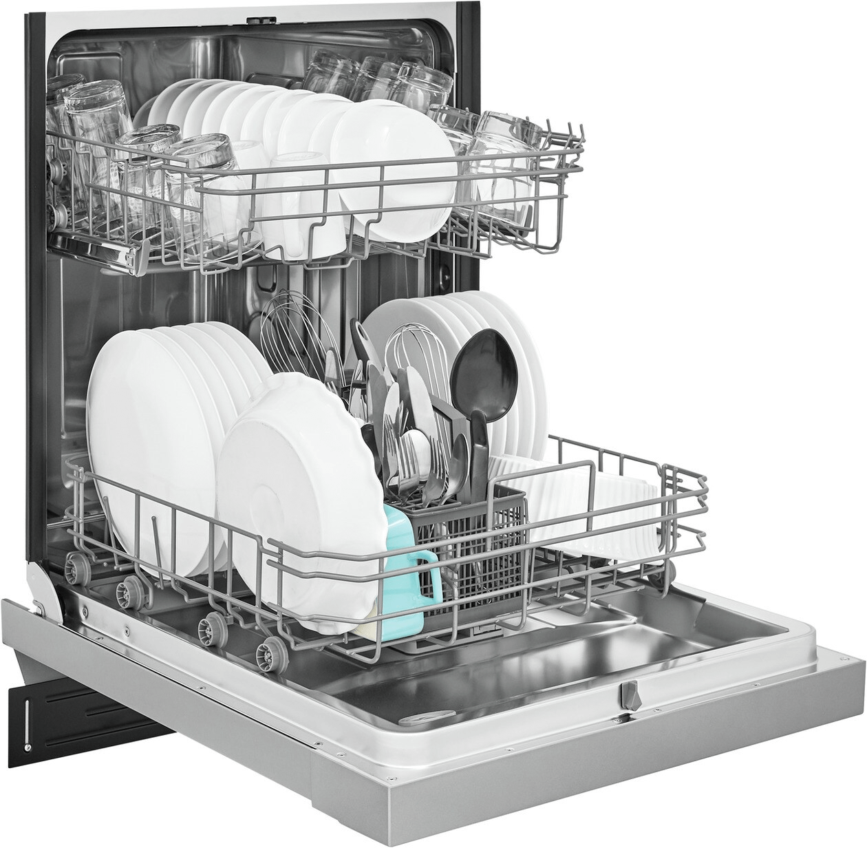 The Frigidaire 24" Built-In Dishwasher is ADA Compliant and features a dual spray arm system that delivers a thorough clean every time. Remove 99.9% of common household bacteria with the Sanitize Cycle, while cleaning up to 12 place settings in one cycle. The Heated Drying System helps ensure your dishes are dry the first time.