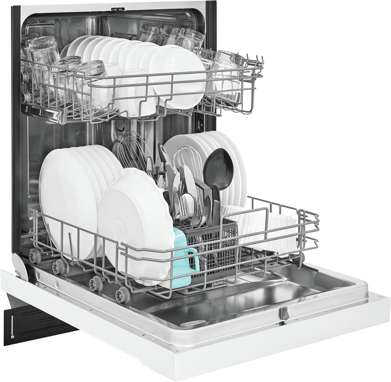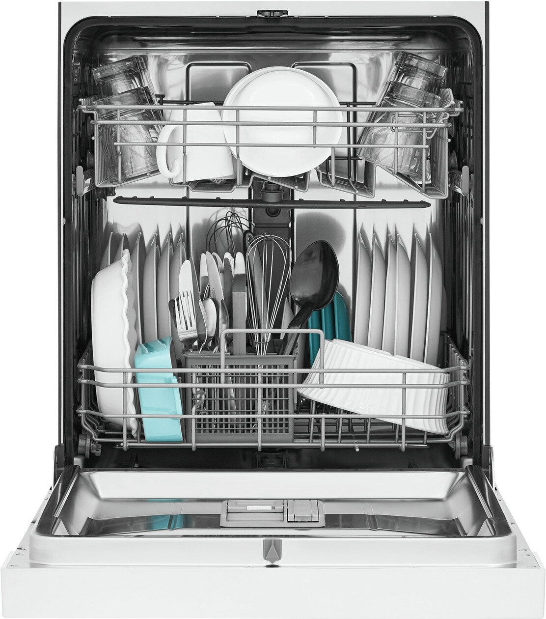 The Frigidaire 24" Built-In Dishwasher is ADA Compliant and features a dual spray arm system that delivers a thorough clean every time. Remove 99.9% of common household bacteria with the Sanitize Cycle, while cleaning up to 12 place settings in one cycle. The Heated Drying System helps ensure your dishes are dry the first time.