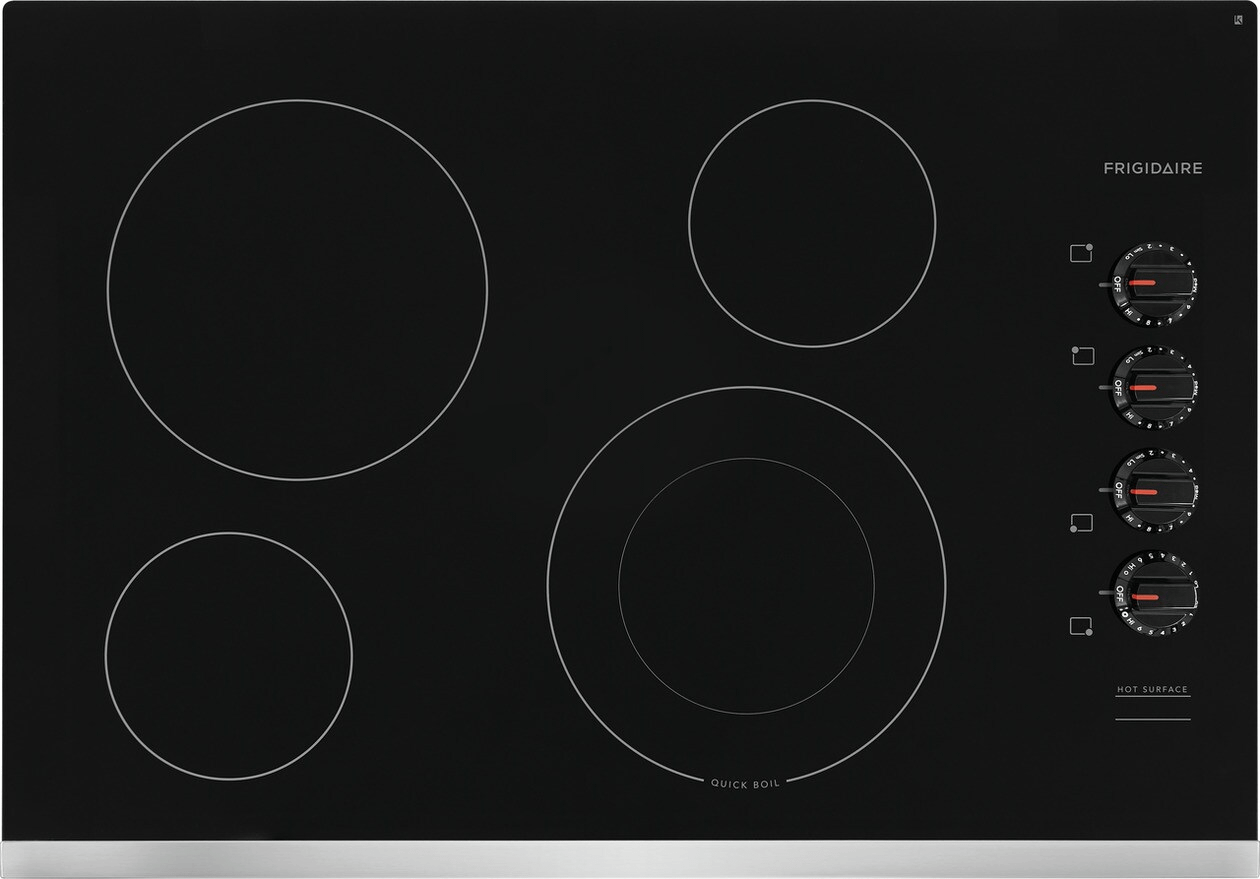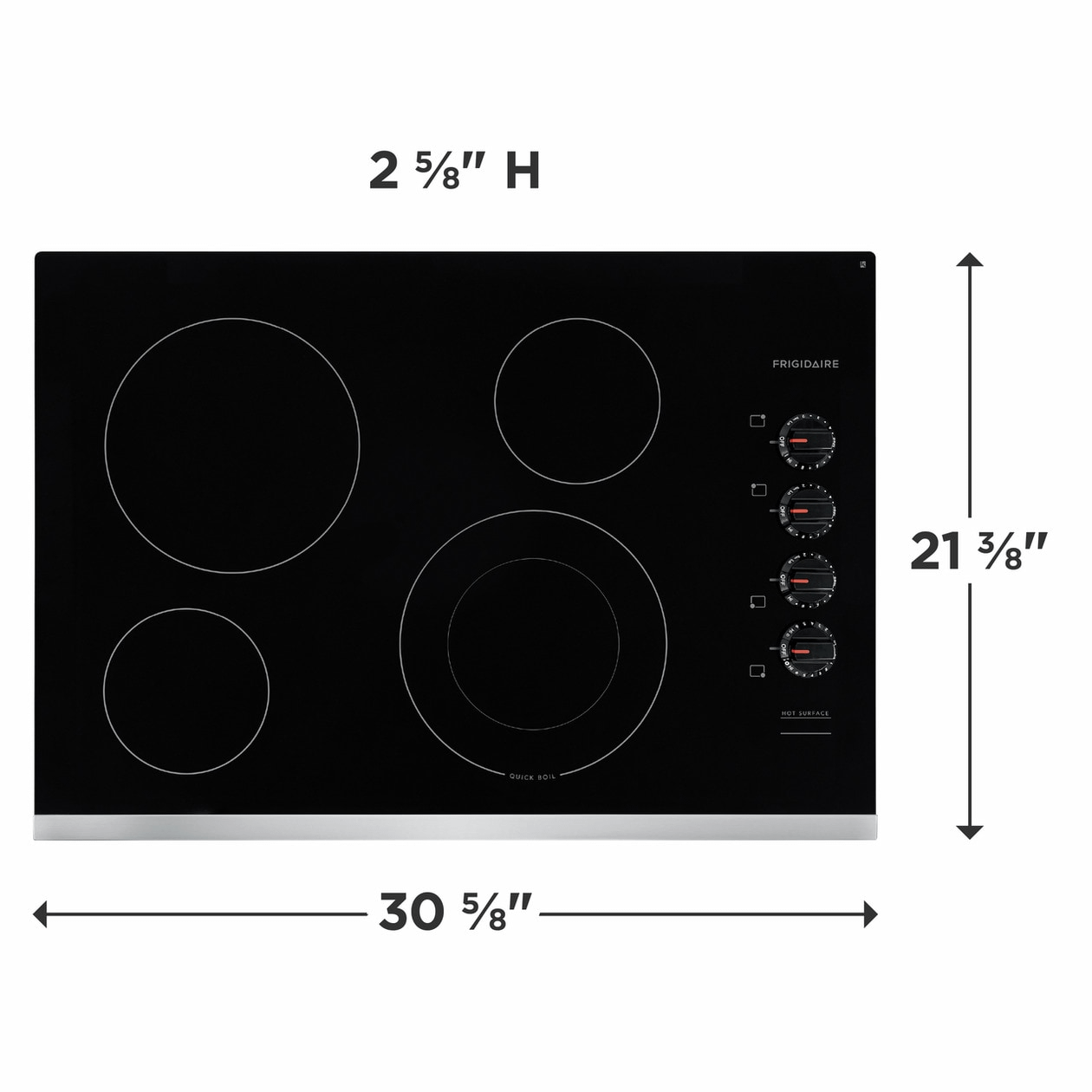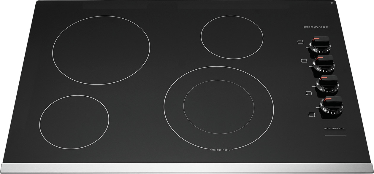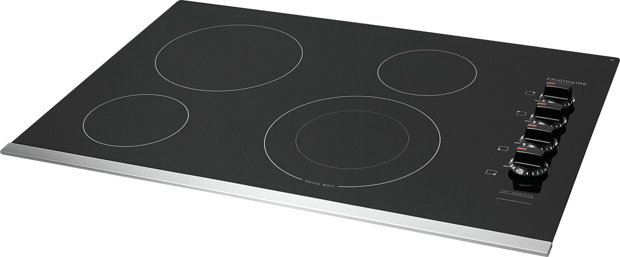 The Frigidaire 30 in. Electric Cooktop has two different element sizes, and alerts you when the cooktop is on and is too hot to touch. This frameless drop-in cooktop has easy-to-use controls that make it easy to select cooking temperatures and options.