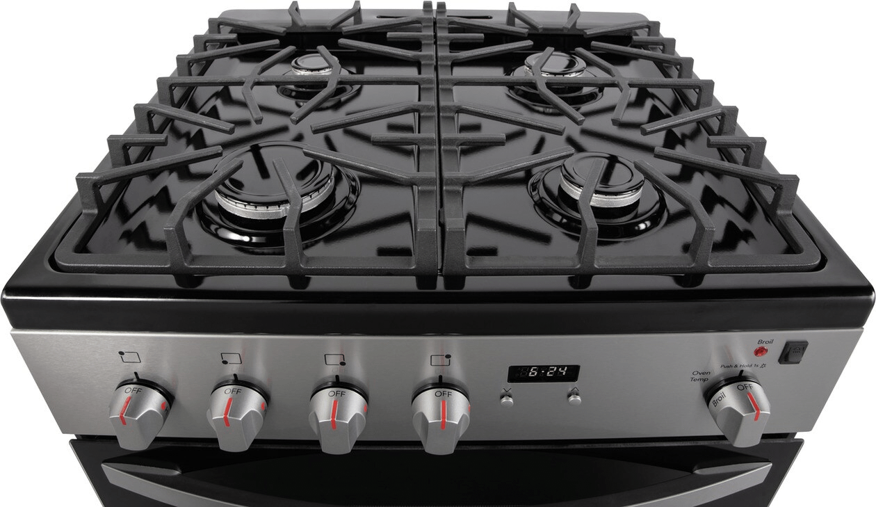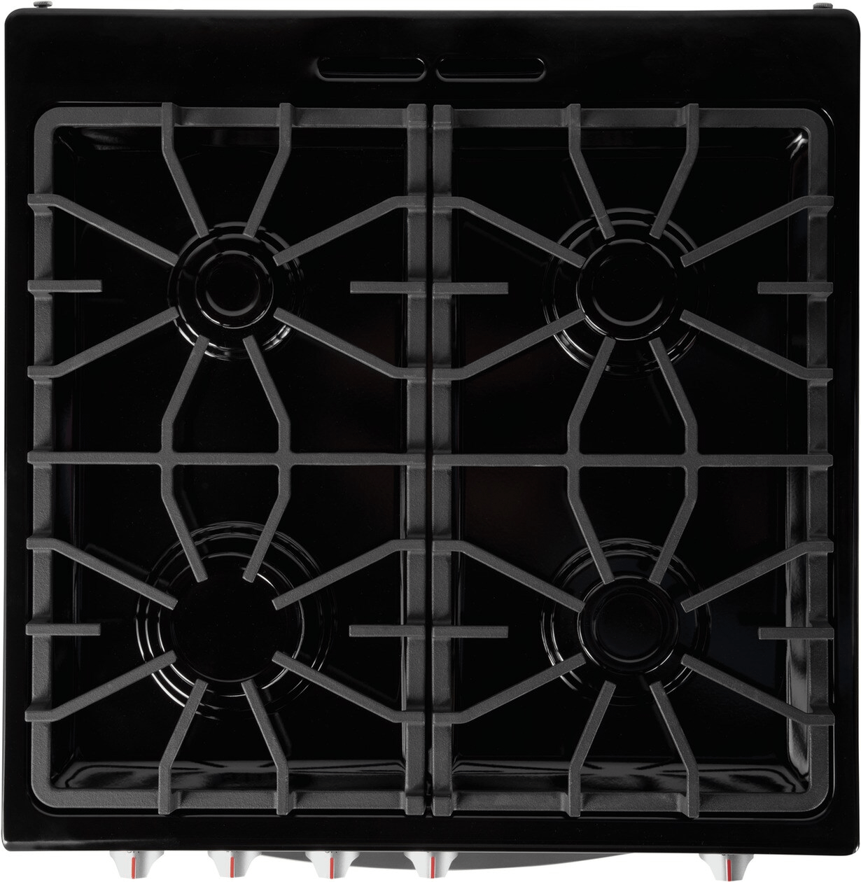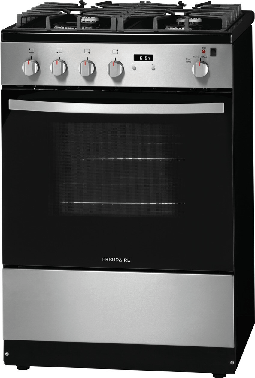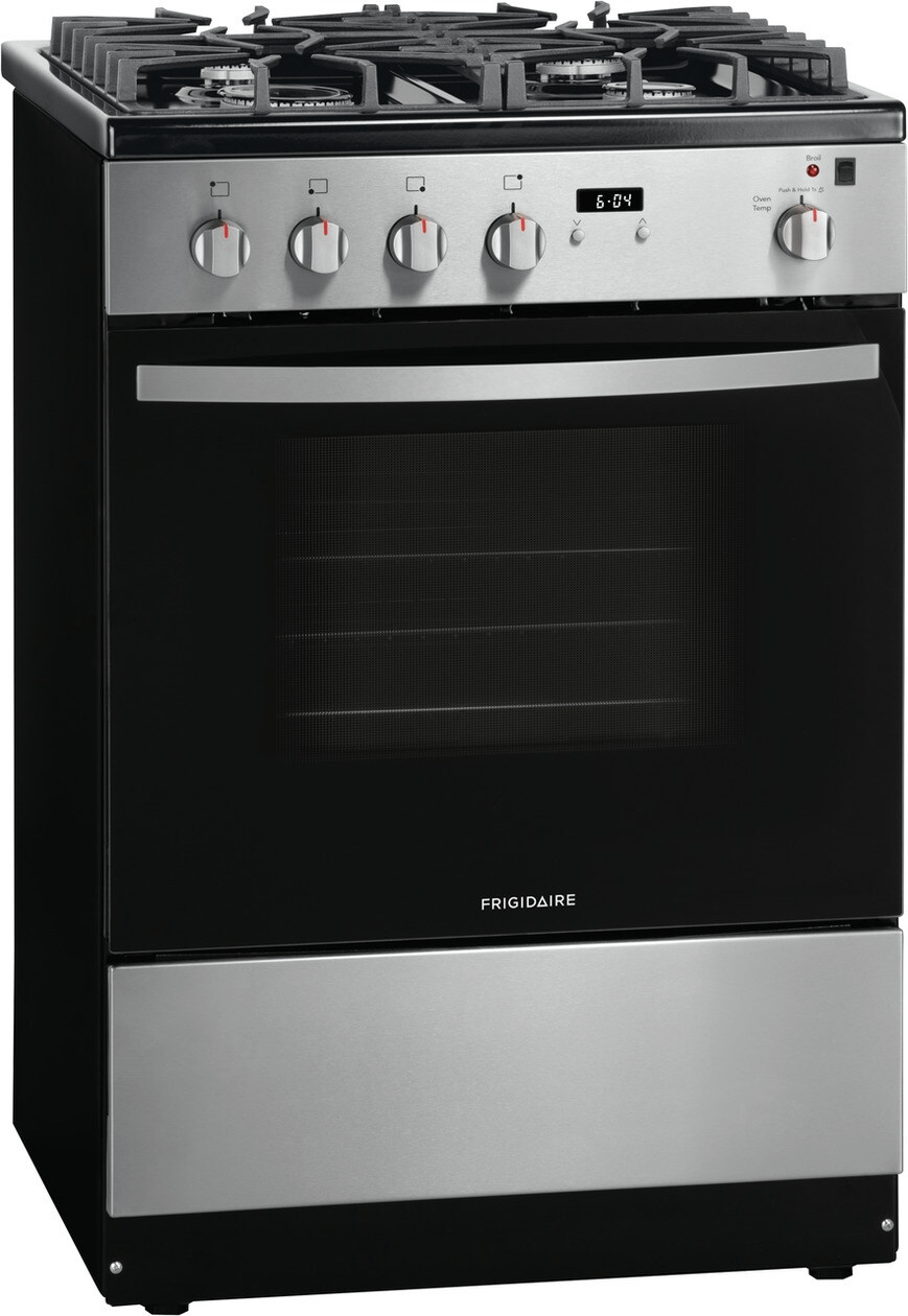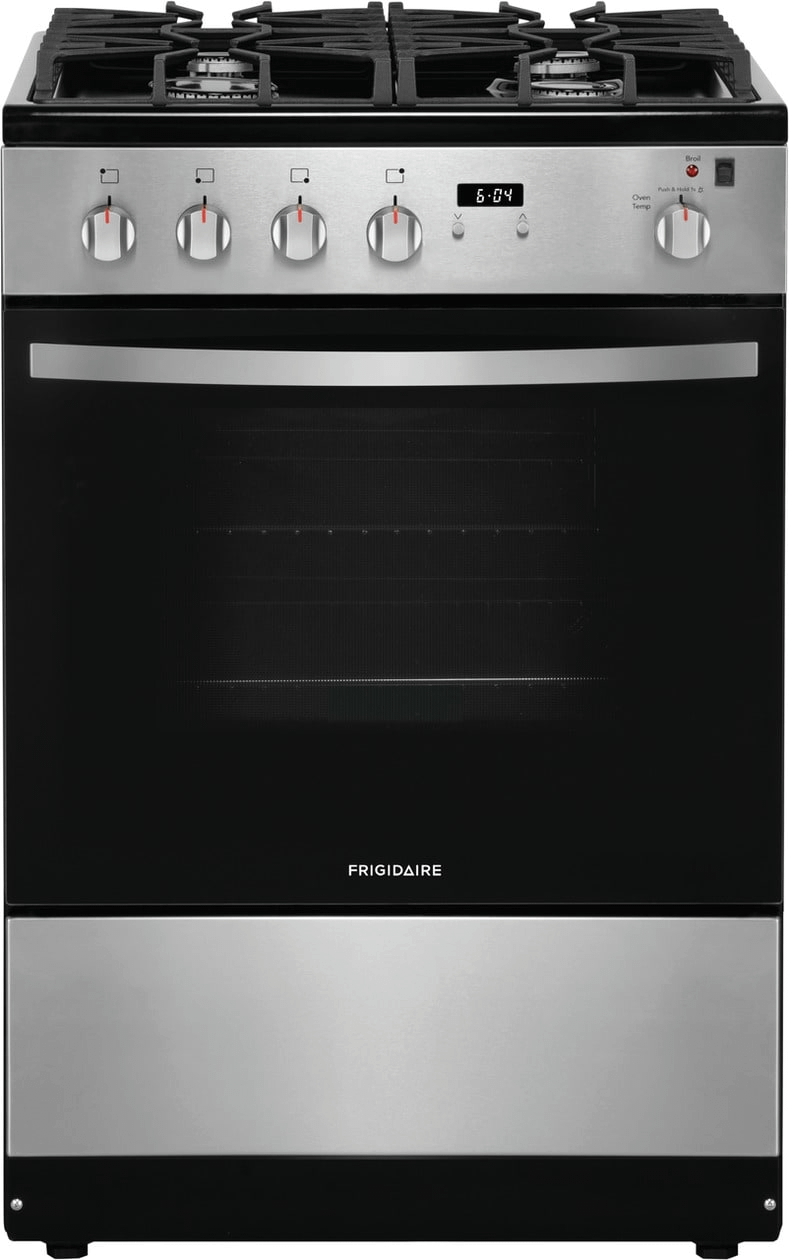 The Frigidaire 24" freestanding gas range has a compact design for smaller kitchen spaces. Continuous grates make it easy to move heavy pots and pans between burners without lifting. Convenient storage drawer offers extra space to store your cookware.
