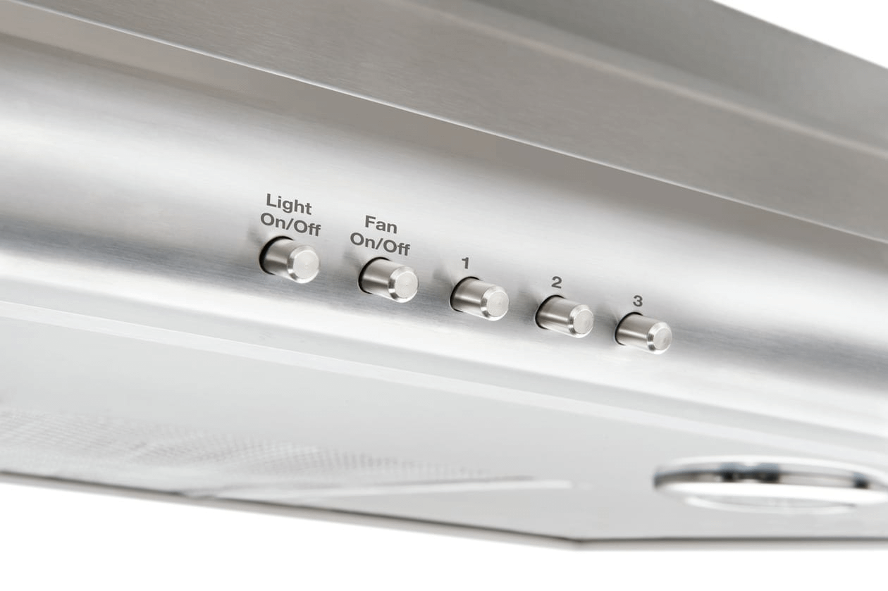 The Frigidaire 30" overhead range hood has a dishwasher safe washable filter. Halogen lighting gives bright illumination of the cooktop surface.
