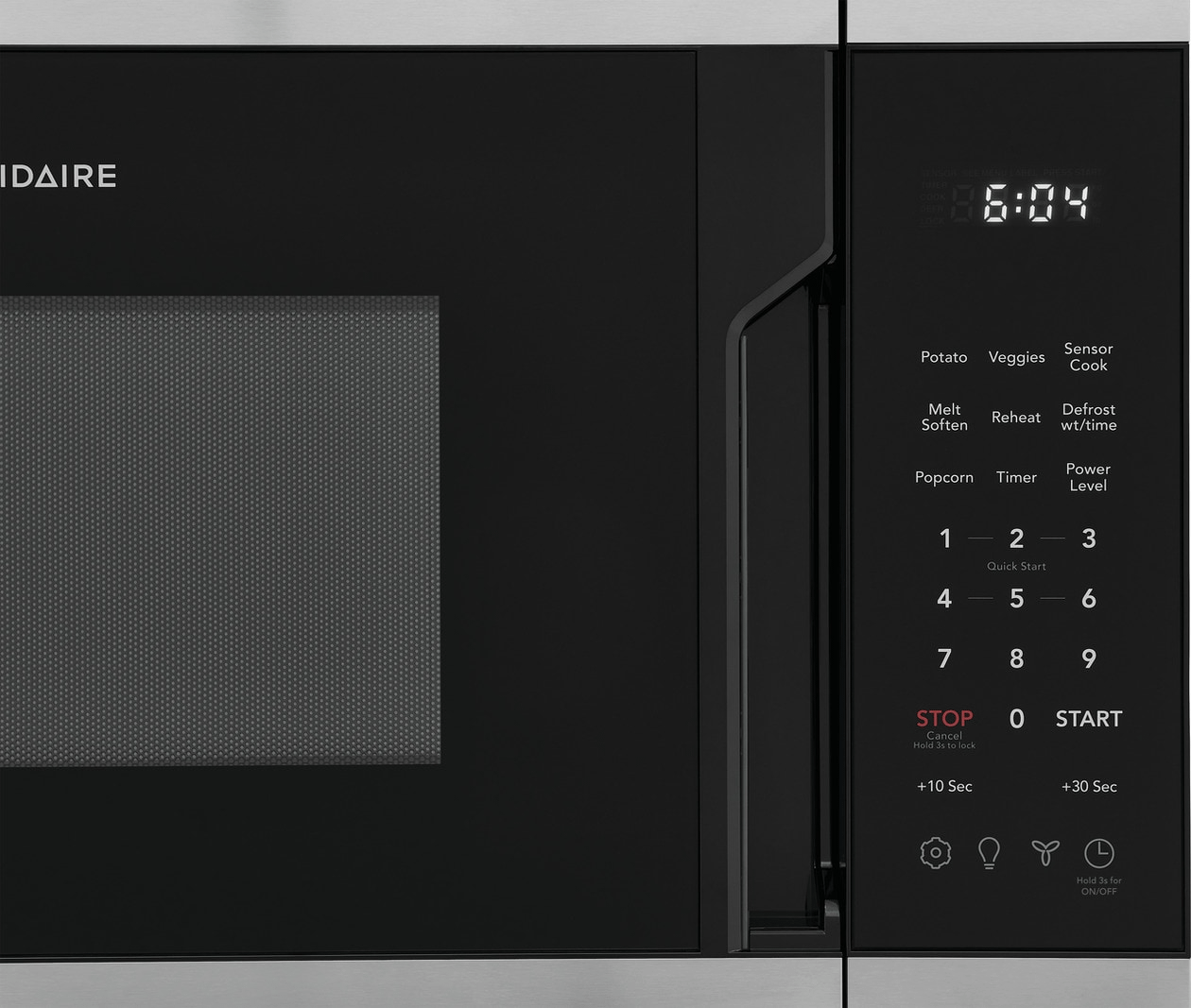 This Frigidaire 1.8 cu. ft. Over-The-Range Pocket Handle Microwave makes meal time easy with Sensor Cook Technology that automatically detects food and adjusts power levels and cooking times giving you great-tasting results. Plus, Convenient Preset Cooking options, and Quick Start buttons offer time savings so that you can put delicious meals on the table without all the extra effort. Meal preparation and cooking is made simple with LED lighting that offers a clear, bright view of your cooktop.