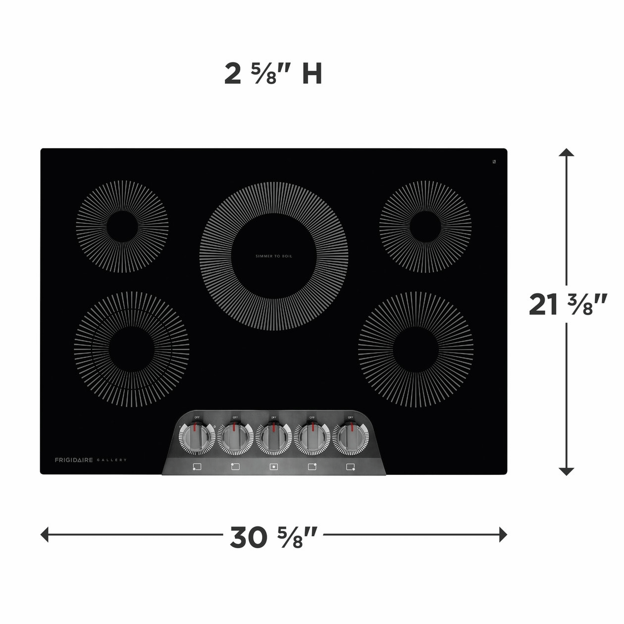 The Frigidaire Gallery 30" Electric Cooktop provides delicious results every time with the EvenTemp® Element that delivers consistent heat across the elements surface, reducing hot and cold spots in your pan. Enjoy ultimate cooking flexibility with powerful elements designed to meet all of your cooking needs, including a Dual Expandable Element and Keep Warm Zone. Plus, these cooktops feature bright, backlit LED knobs that light up when the cooktop is in use, conveniently placed on the front of the cooktop.