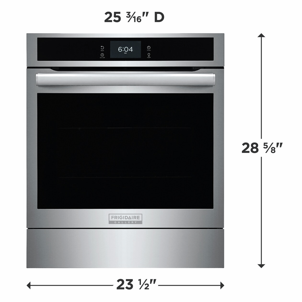 The Frigidaire Gallery 24" Single Electric Wall Oven with Air Fry allows you to make healthier and delicious meals for your family- right in your oven. Get faster, more even baking results with True Convection, that evenly circulates hot air throughout the oven. This wall oven also features our premium touch screen control panel and our fingerprint resistant, Smudge-Proof® Stainless Steel finish.