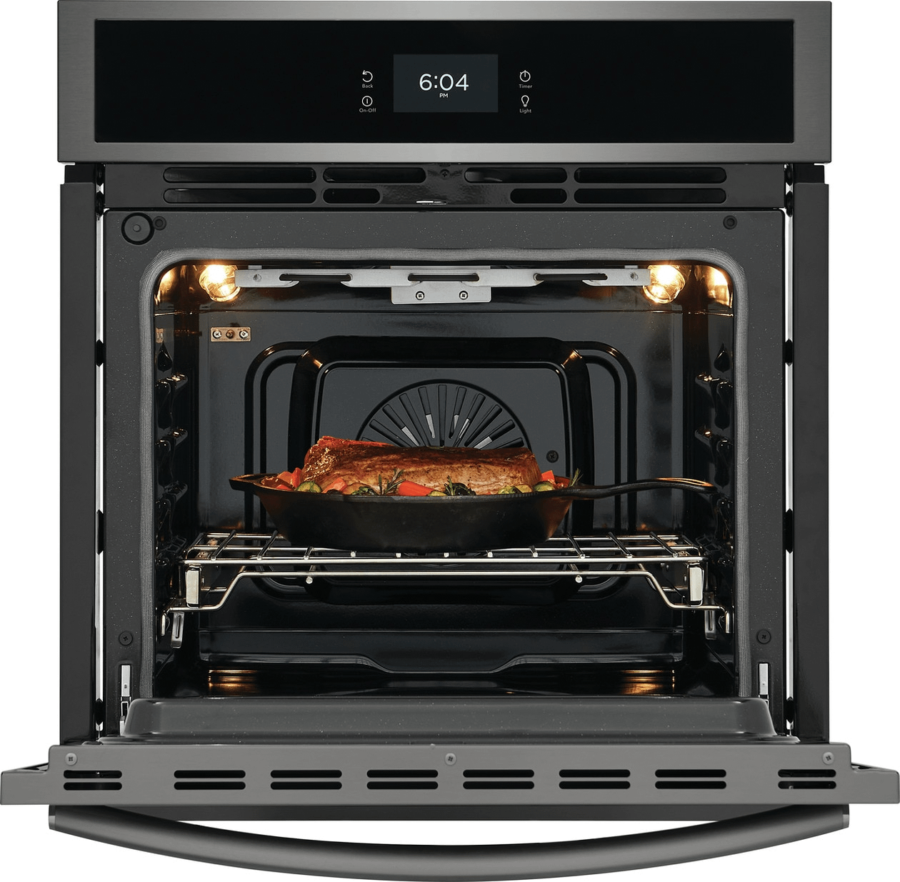 The Frigidaire Gallery 27" Single Wall Oven with Total Convection, features our most powerful and advanced convection system, which enables cooking modes like No Preheat, Air Fry, Slow Cook, Steam Bake, Steam Roast, Air Sous Vide, Convection Roast, Convection Bake, Bread Proof and more! Also includes a convenient temperature probe, a premium touch screen digital control panel and our fingerprint resistant, Smudge-Proof® Stainless Steel finish.