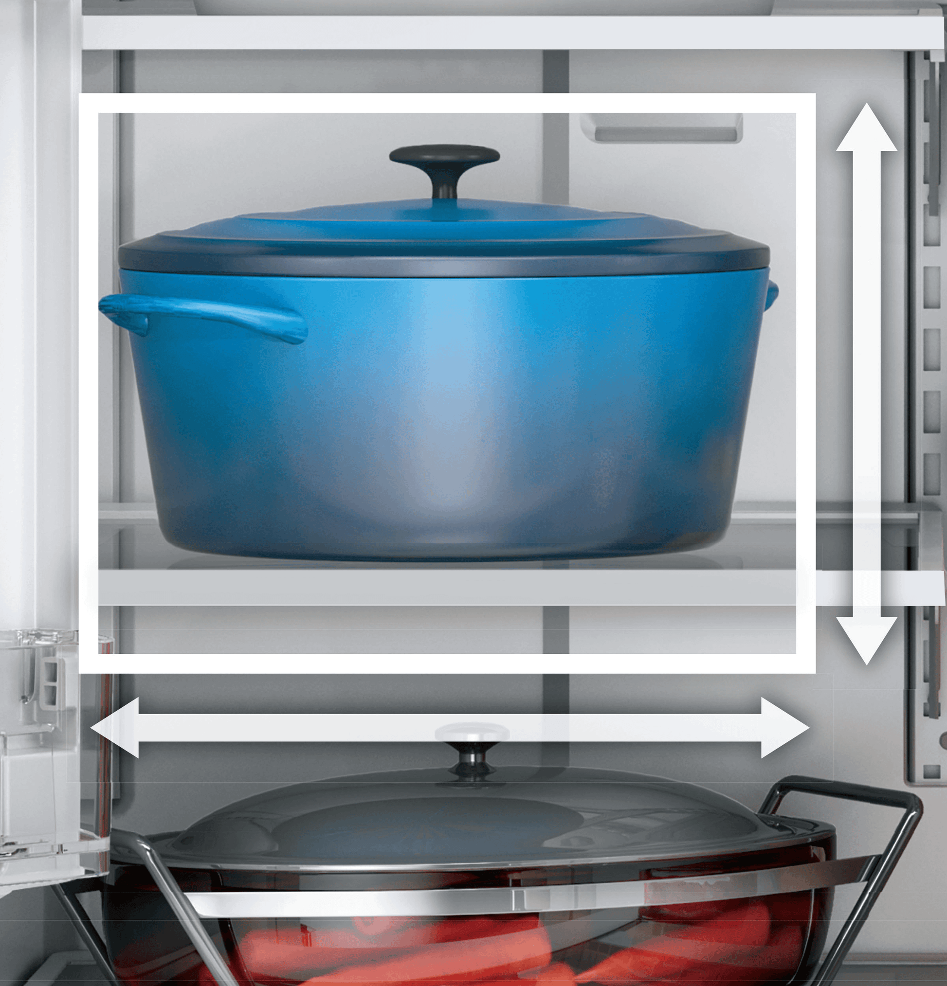Create the right environment for keeping fruits and vegetables fresh, while easily storing wider items like a party platter or a sheet cake