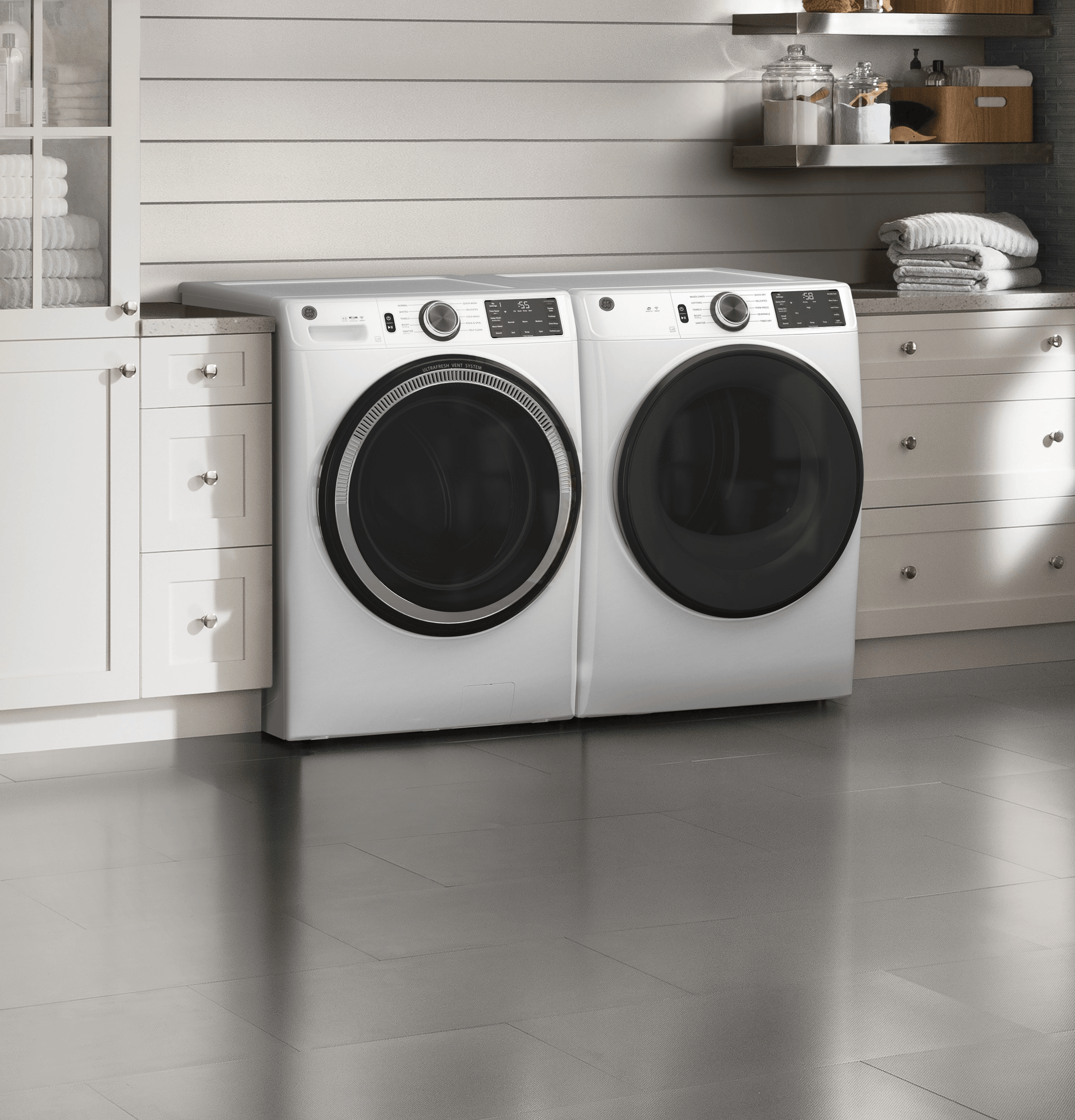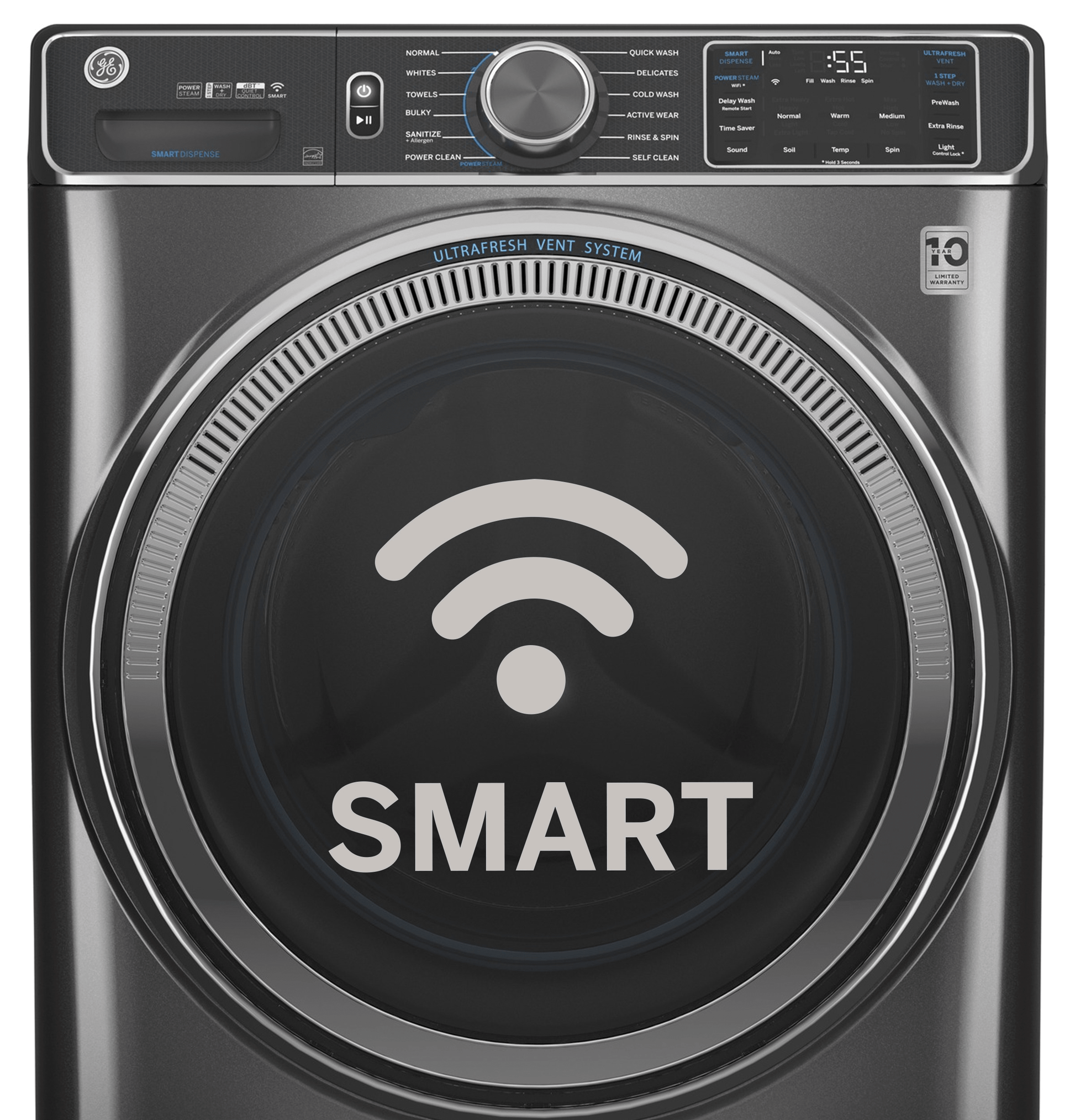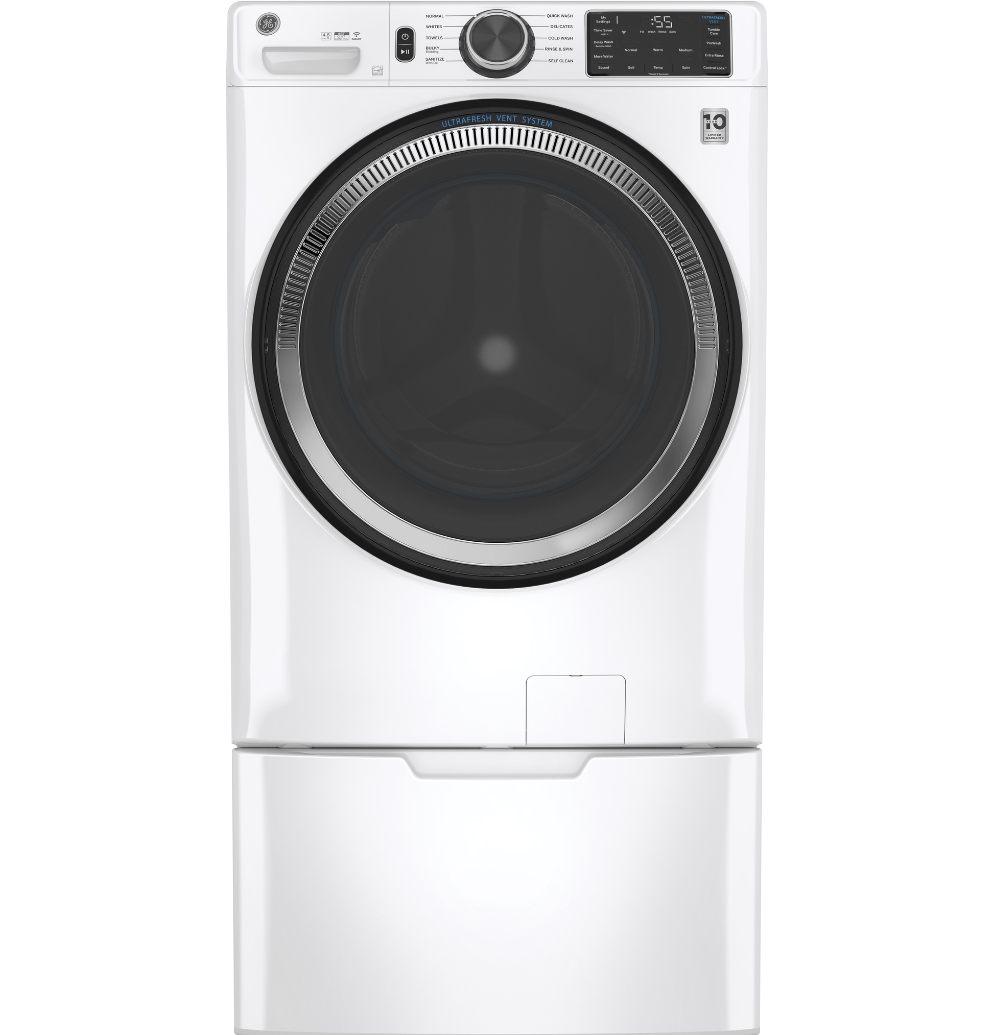 GE® ENERGY STAR 4.8 cu. ft. Capacity Smart Front Load ® Washer with UltraFresh Vent System with OdorBlock™ and Sanitize w/Oxi