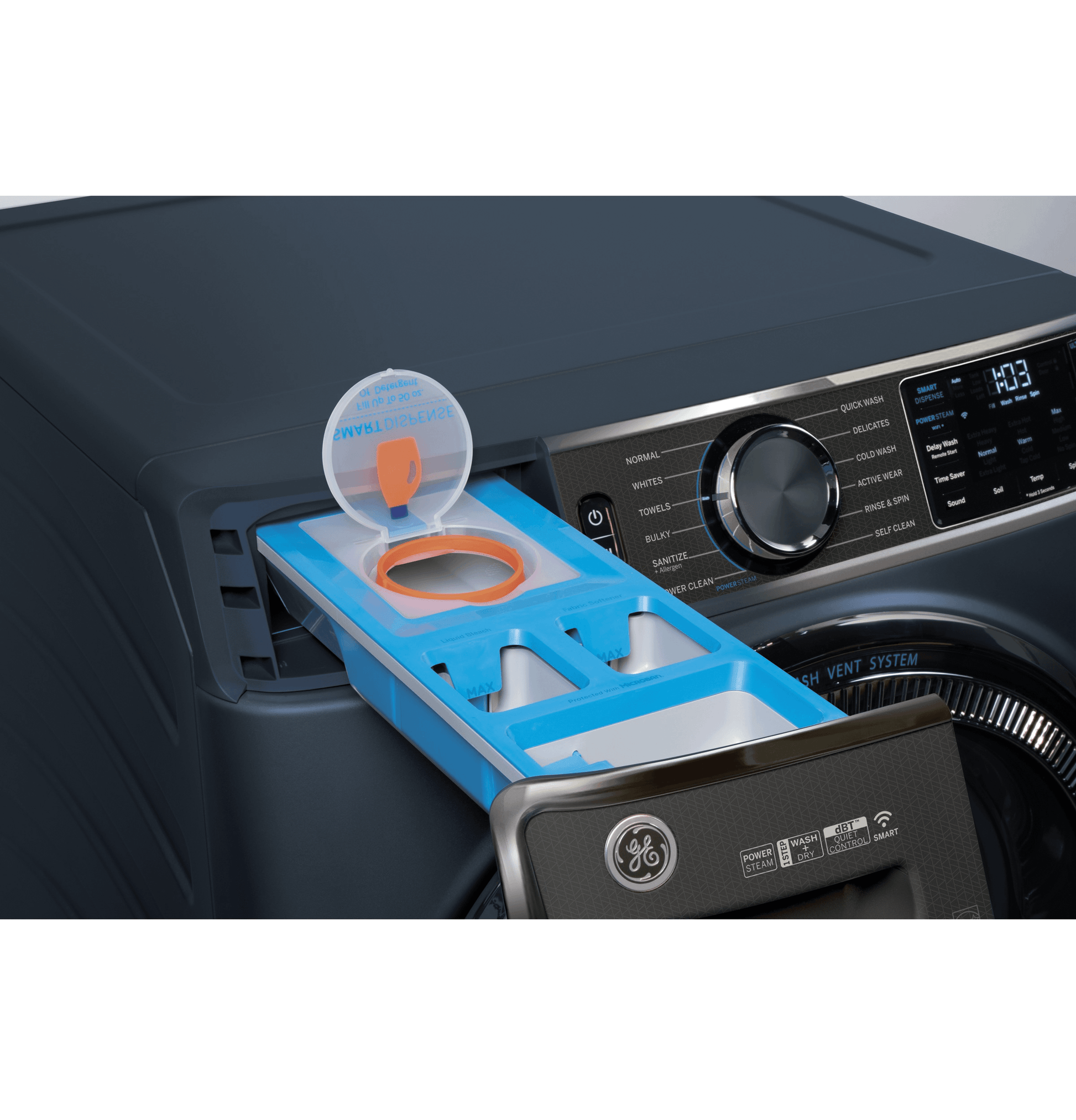 GE® ENERGY STAR® 5.0 cu. ft. Capacity Smart Front Load Steam Washer with SmartDispense™ UltraFresh Vent System with OdorBlock™ and Sanitize + Allergen