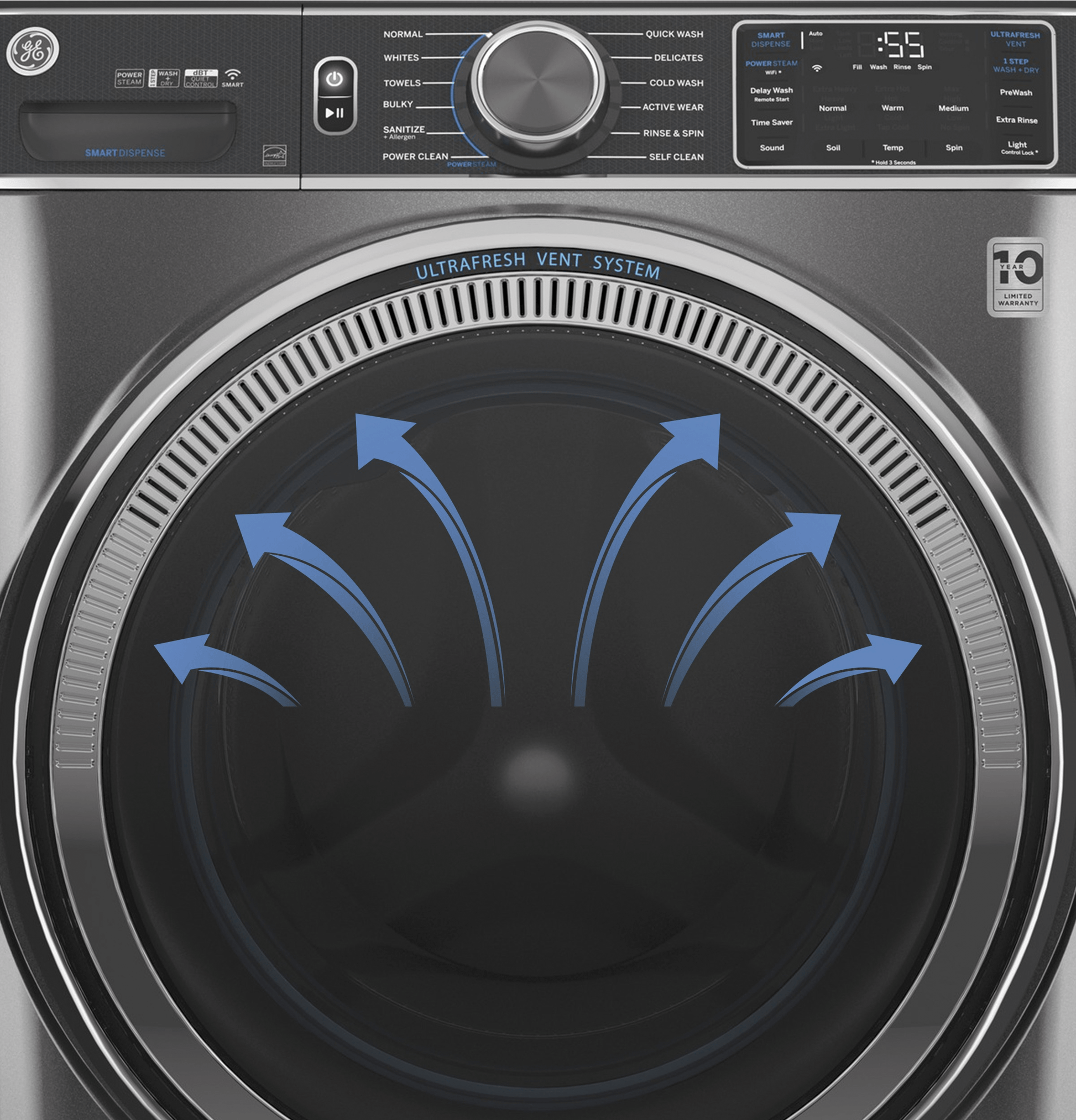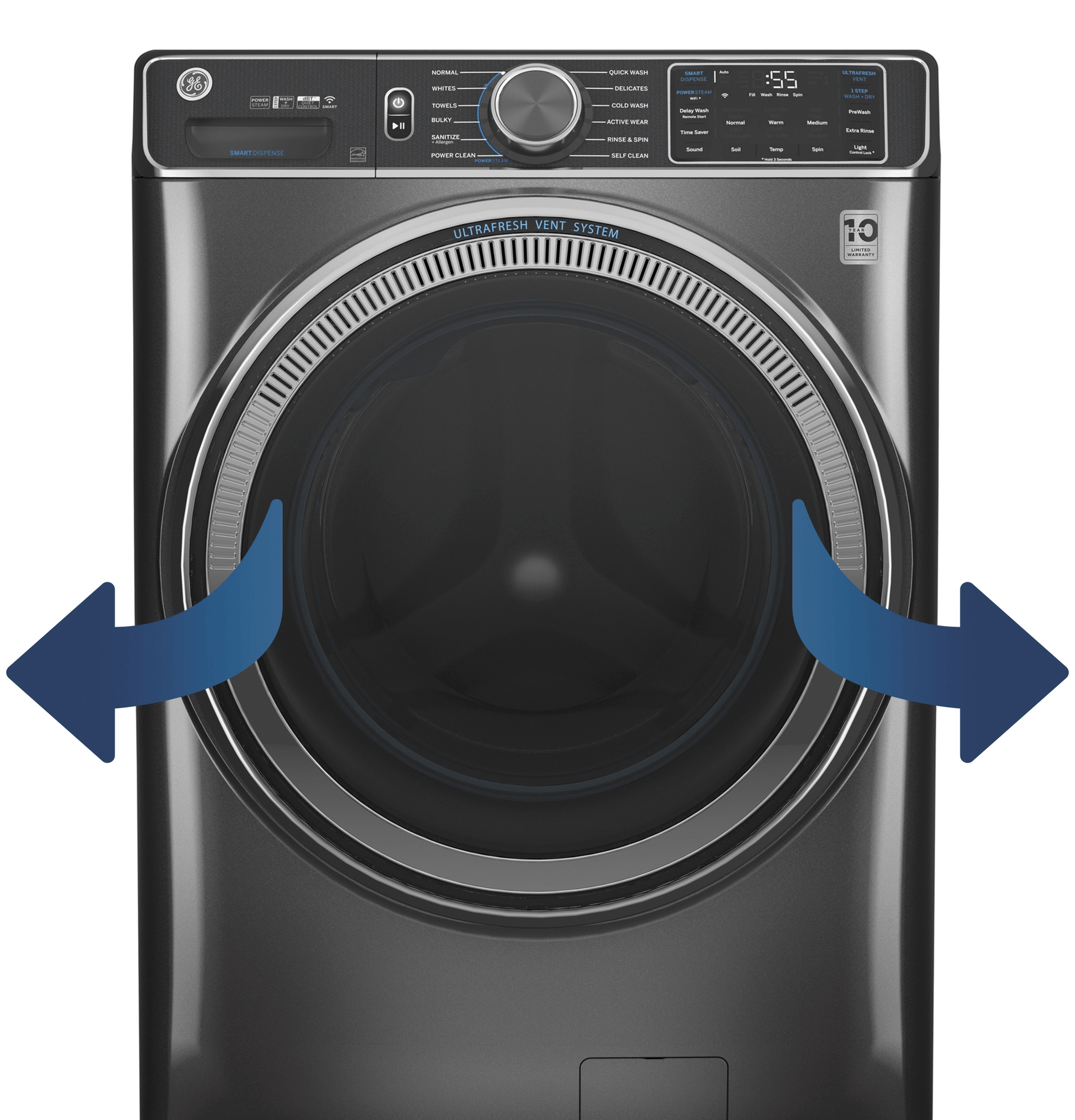 GE® ENERGY STAR® 5.0 cu. ft. Capacity Smart Front Load Steam Washer with SmartDispense™ UltraFresh Vent System with OdorBlock™ and Sanitize + Allergen