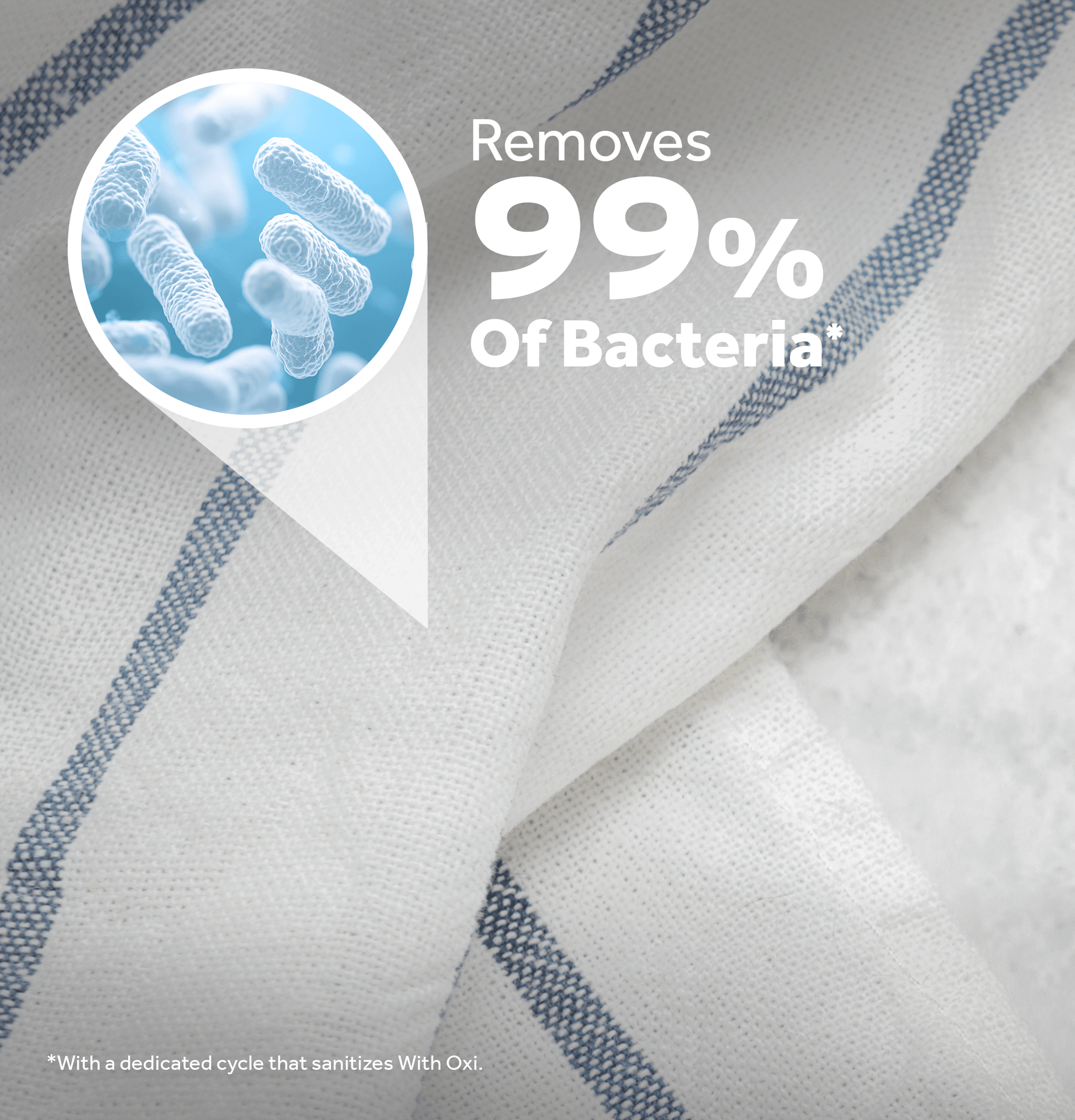 - Remove 99% of bacteria with a dedicated cycle that lets you sanitize with Oxi. The additive boosts your detergent's cleaning power so that you can keep your fabrics looking and feeling their best.