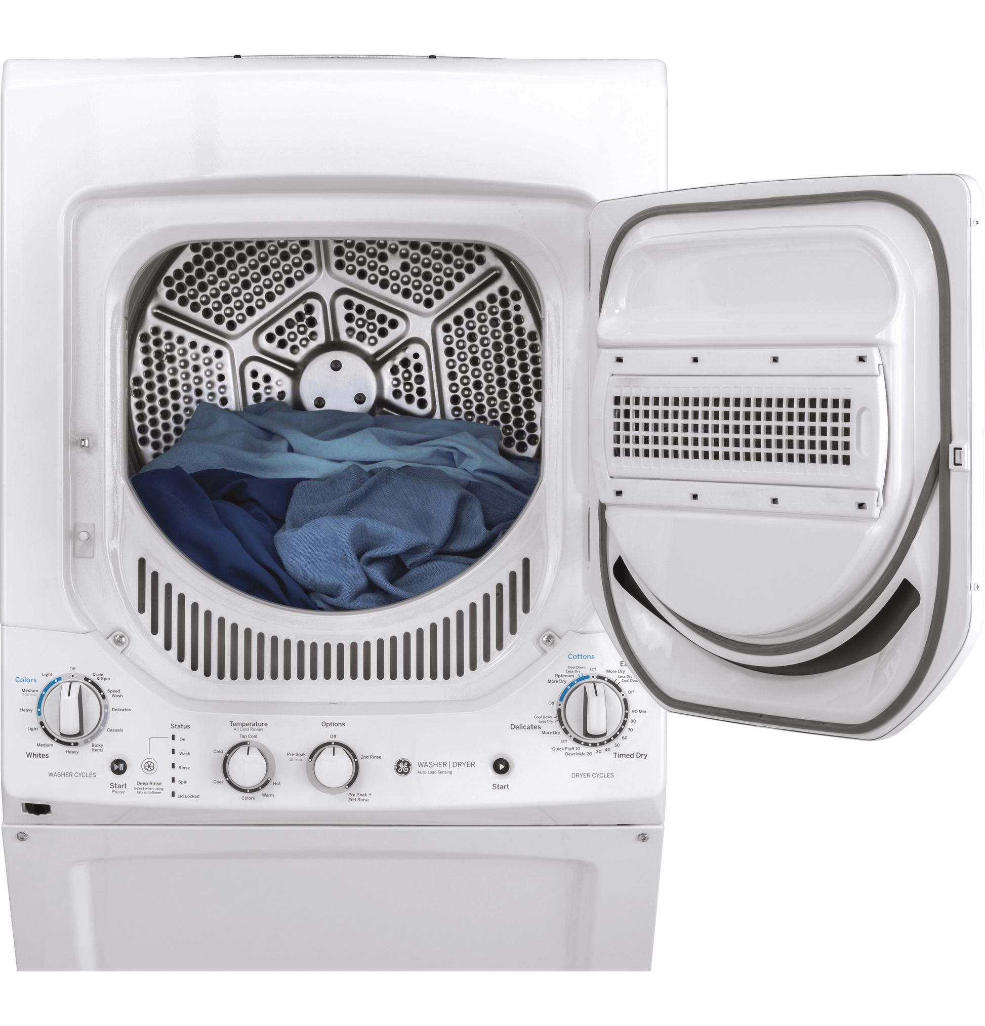 GE Unitized Spacemaker® 2.3 cu. ft. Capacity Washer with Stainless Steel Basket and 4.4 cu. ft. Capacity Gas Dryer