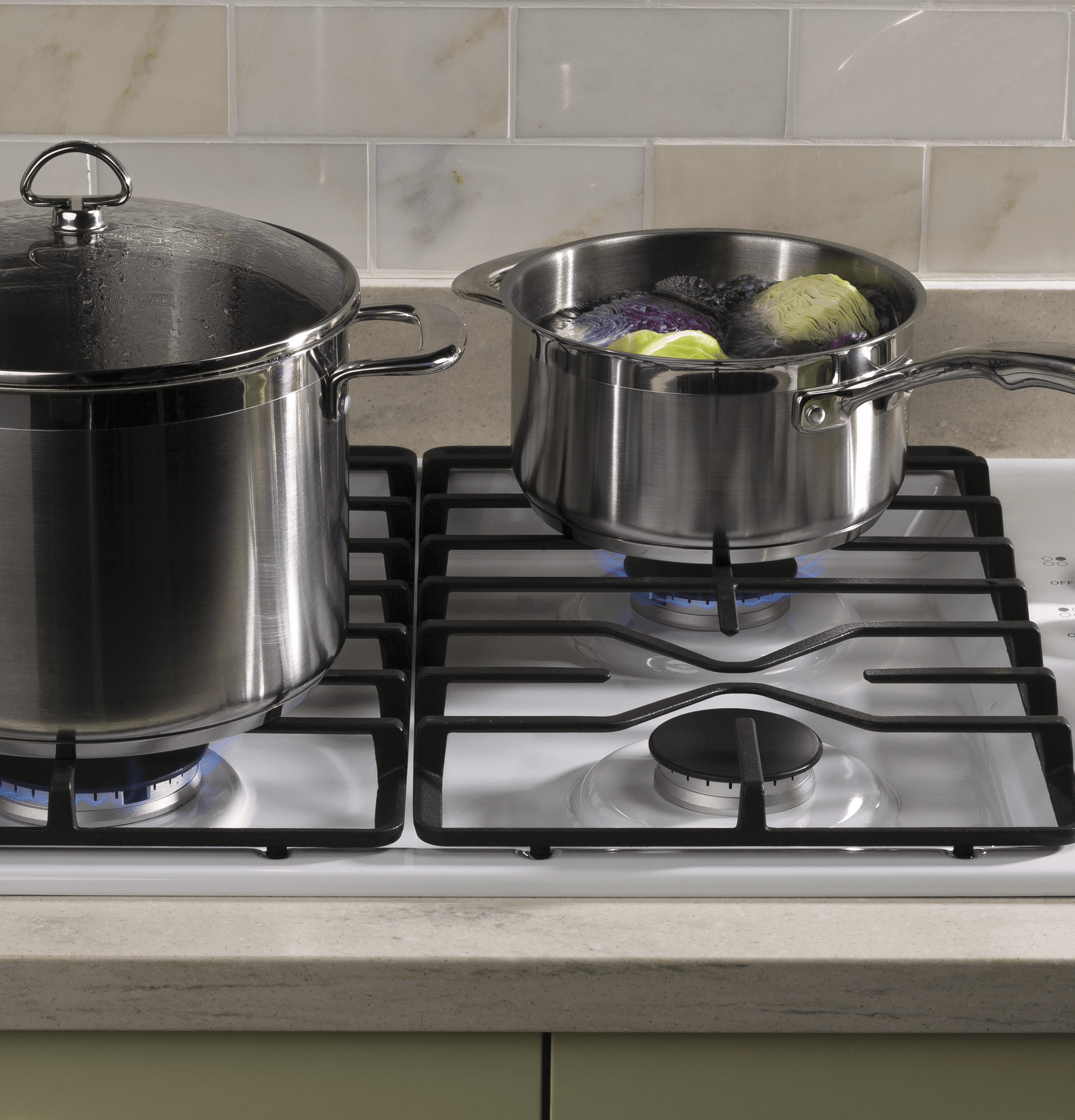 Cooktop Burner Grate Features | Continuous Grates Dishwasher Safe |