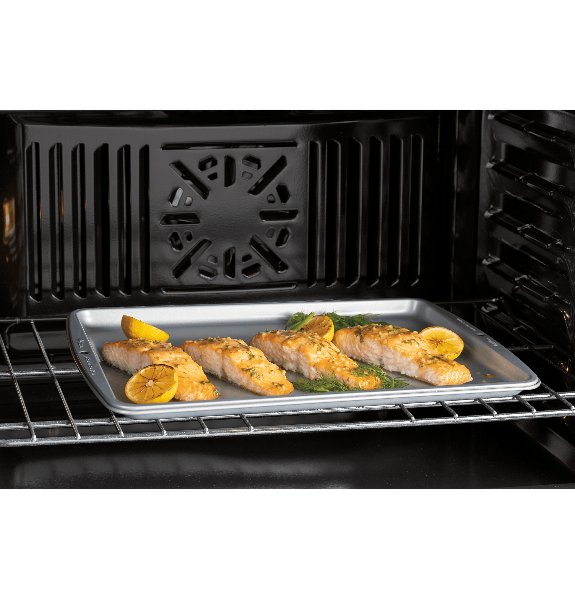 - Achieve faster and more even results with a convection fan and third heating element that circulates air for more efficient cooking