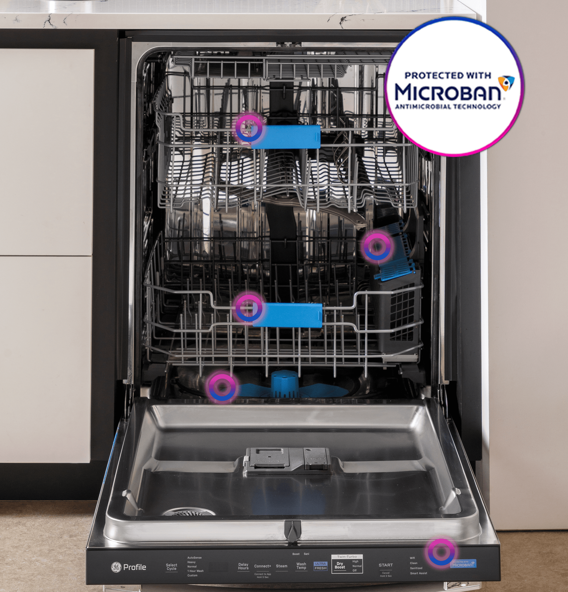 - Enjoy longer lasting dishwasher protection thanks to Microban(R) Antimicrobial Technology. Built into high usage points to prevent bacteria growth, it keeps surfaces 99% cleaner than unprotected surfaces.