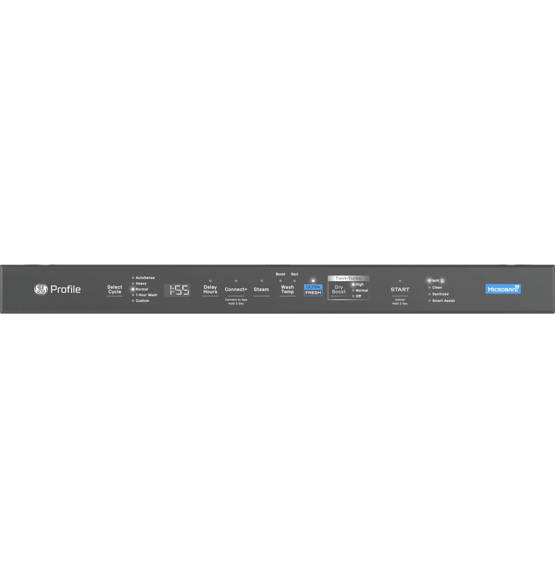 Dishwasher Options | Bottle Wash (on app) Child Lock (on app) Delay Start 1-12 Hr. Sabbath Mode Sani (Certified to NSF Standard 184) Start/Cancel Steam PreWash Twin-Turbo Dry Boost - High Twin-Turbo Dry Boost - Normal Heated Dry Twin-Turbo Dry Boost - Off UltraFresh Wash TempBoost Wash Zones/Half Load (on app) |