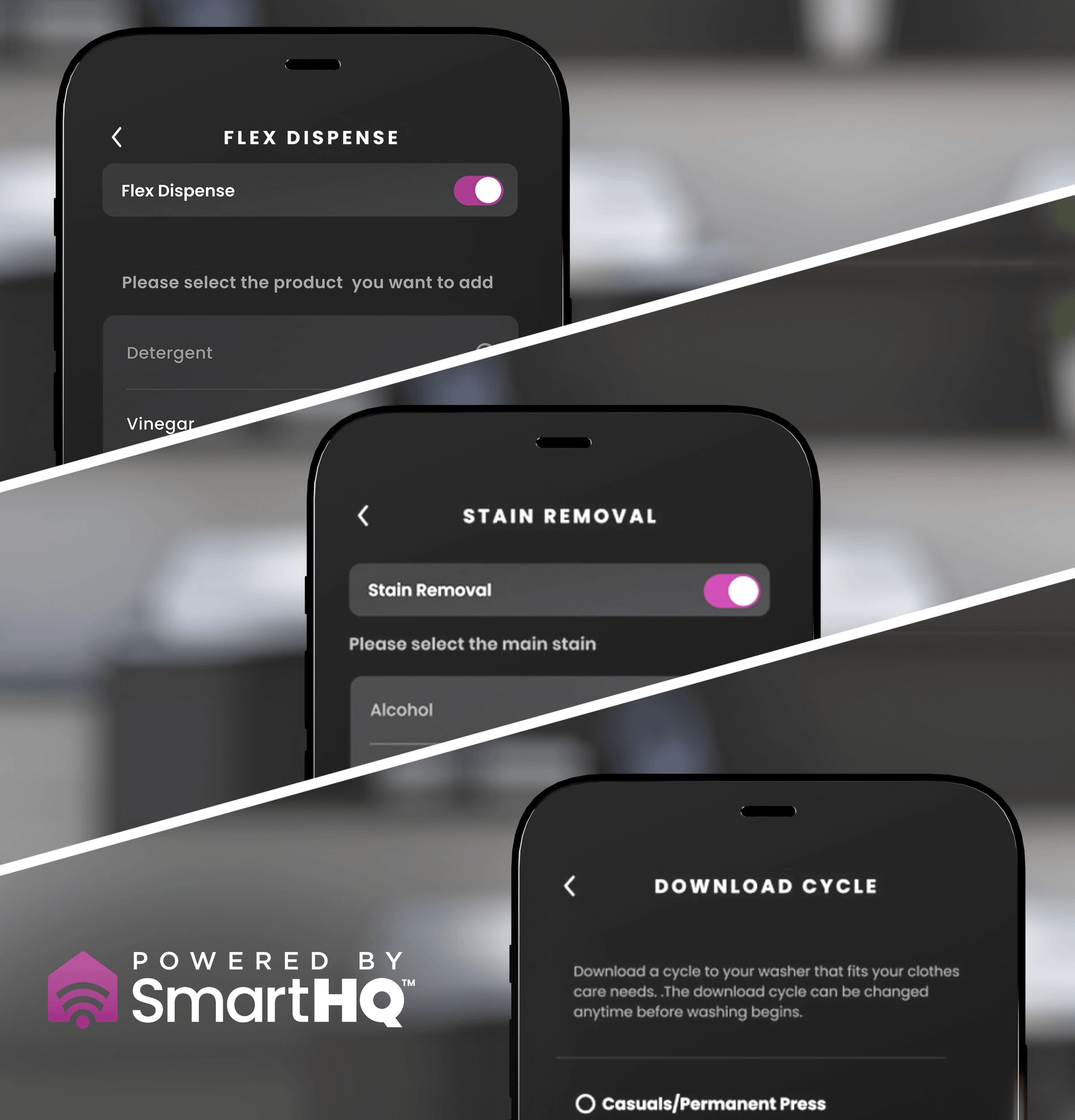 - Ensure your washer always has the latest features, including customized stain removal technology and extra cycles for active wear and casuals Plus, easily control and monitor your laundry from anywhere, receive remote status notifications and more