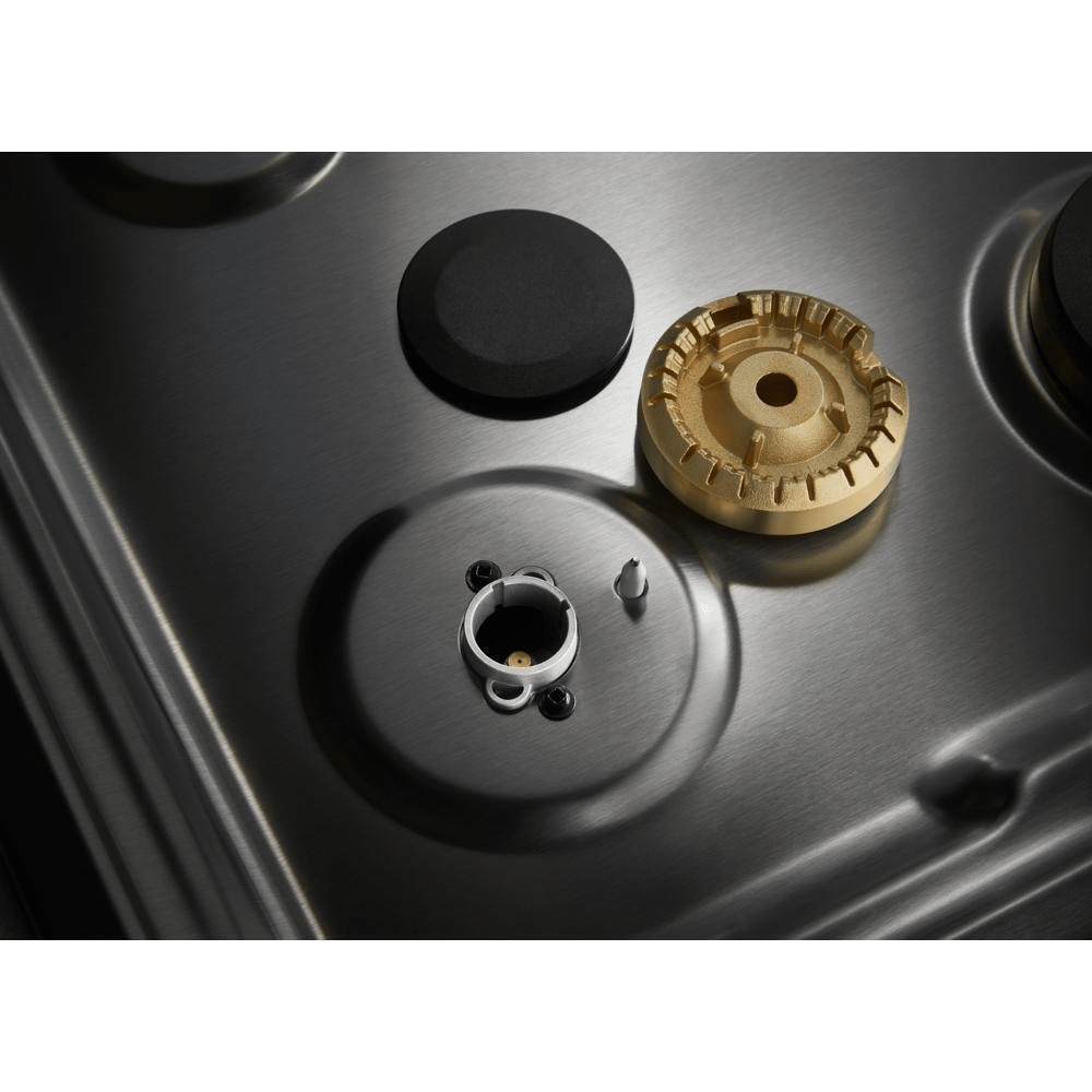 - Elegant brass burners effectively direct heat for desired cooking results and can be removed for easy cleaning.