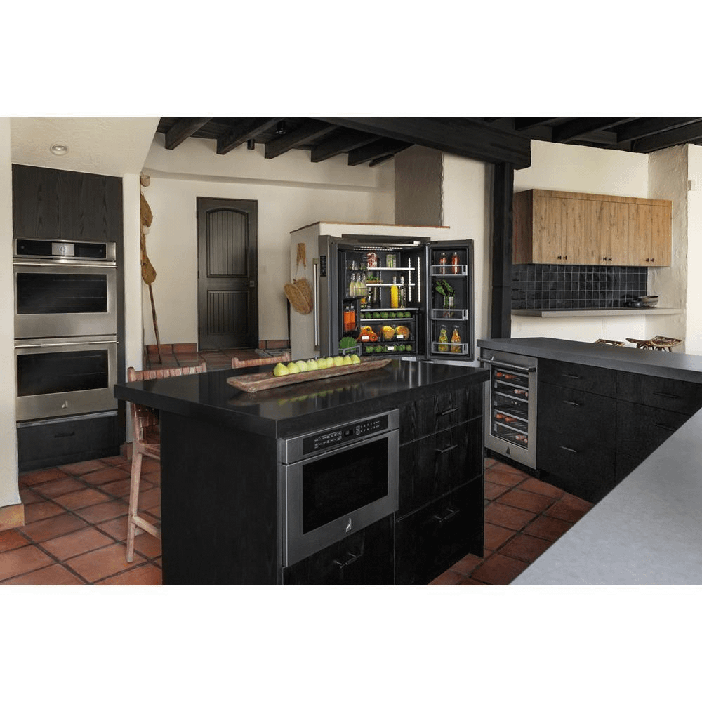- Captivation cloaked in black. Beyond a dark glass expanse, cinematic lighting illuminates smooth racks, flat tines, and an enticing jet black interior.
