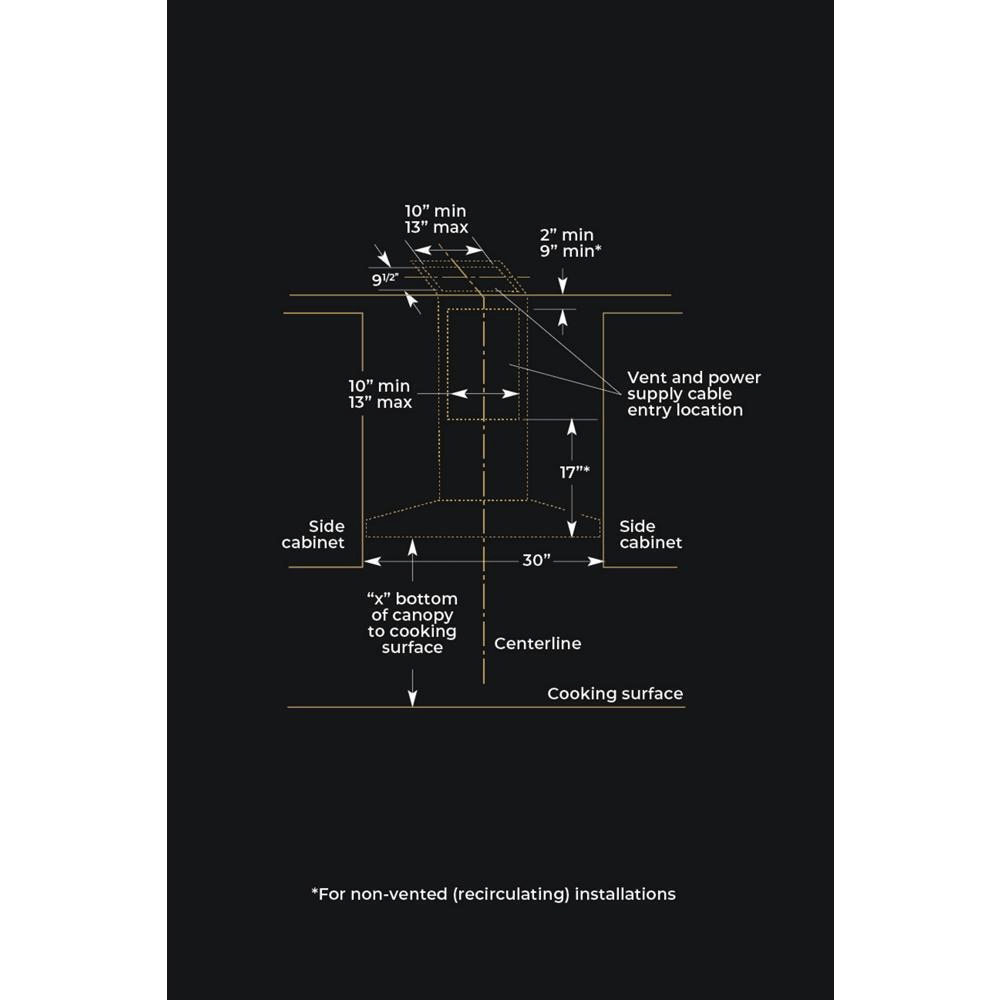This 30 Pyramid Style Wall-Mount Canopy Hood gracefully accents any sophisticated kitchen that follows a more traditional layout, brilliantly illuminated by LED task and ambient lighting. A 600-CFM high-performance blower combines with perimetric extraction to efficiently and effectively clean the air while remaining exceptionally quiet.