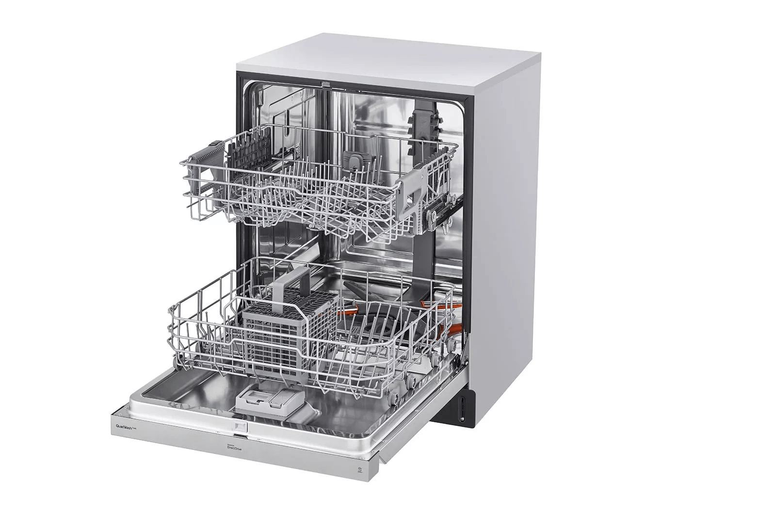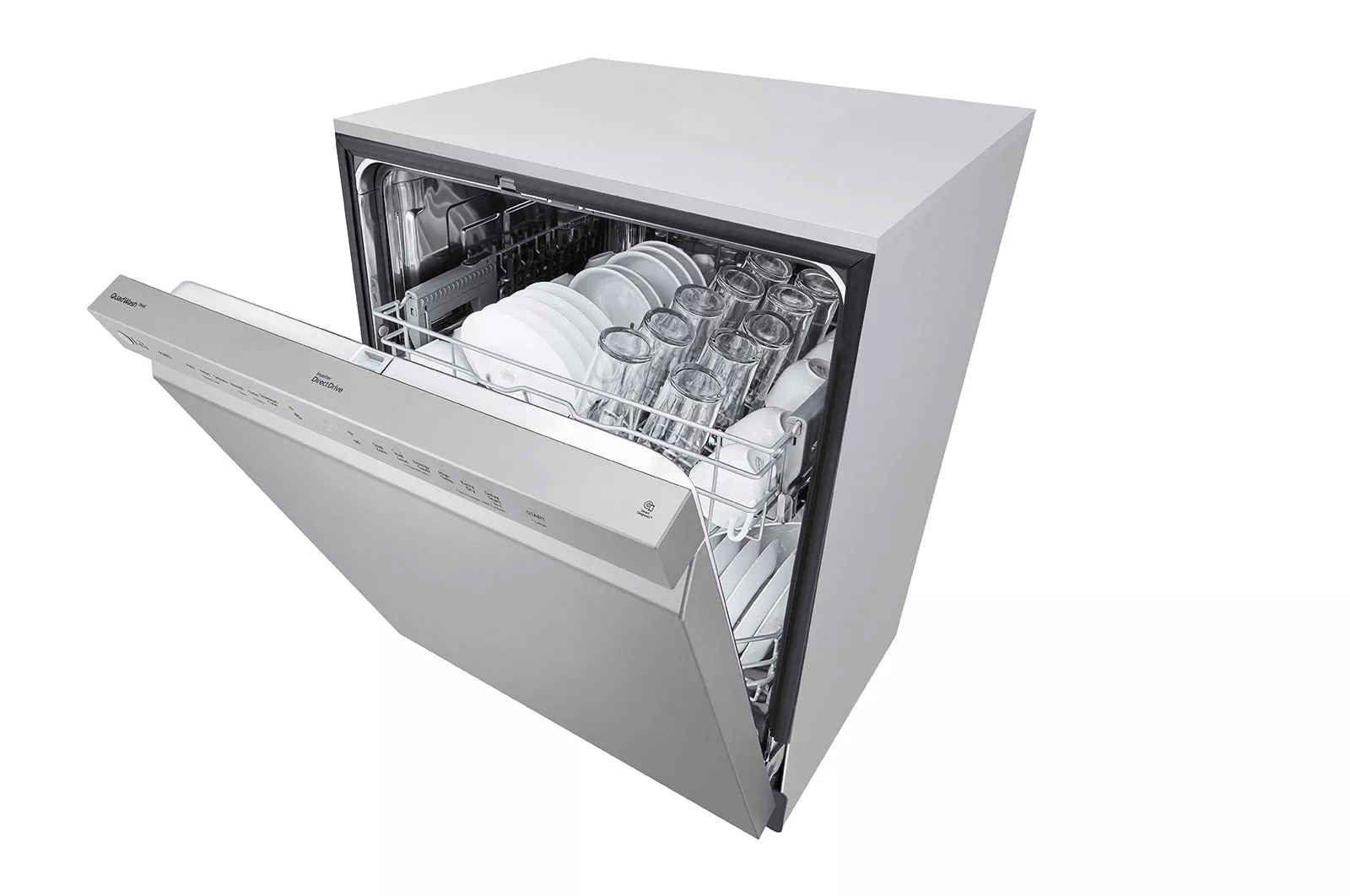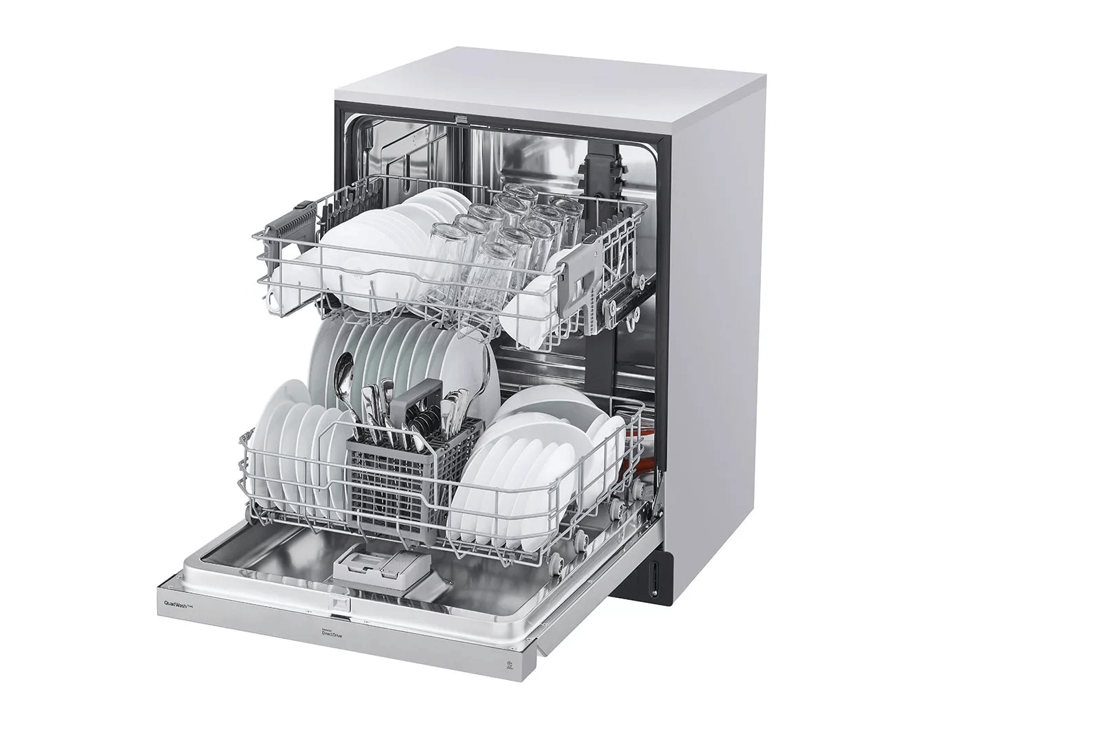 - LG's exclusive QuadWash(TM) technology gets dishes clean the first time. With four spray arms instead of just two, QuadWash(TM) uses Multi-Motion arms that rotate back and forth while spinning to power-clean dishes from multiple angles throughout the entire cycle.