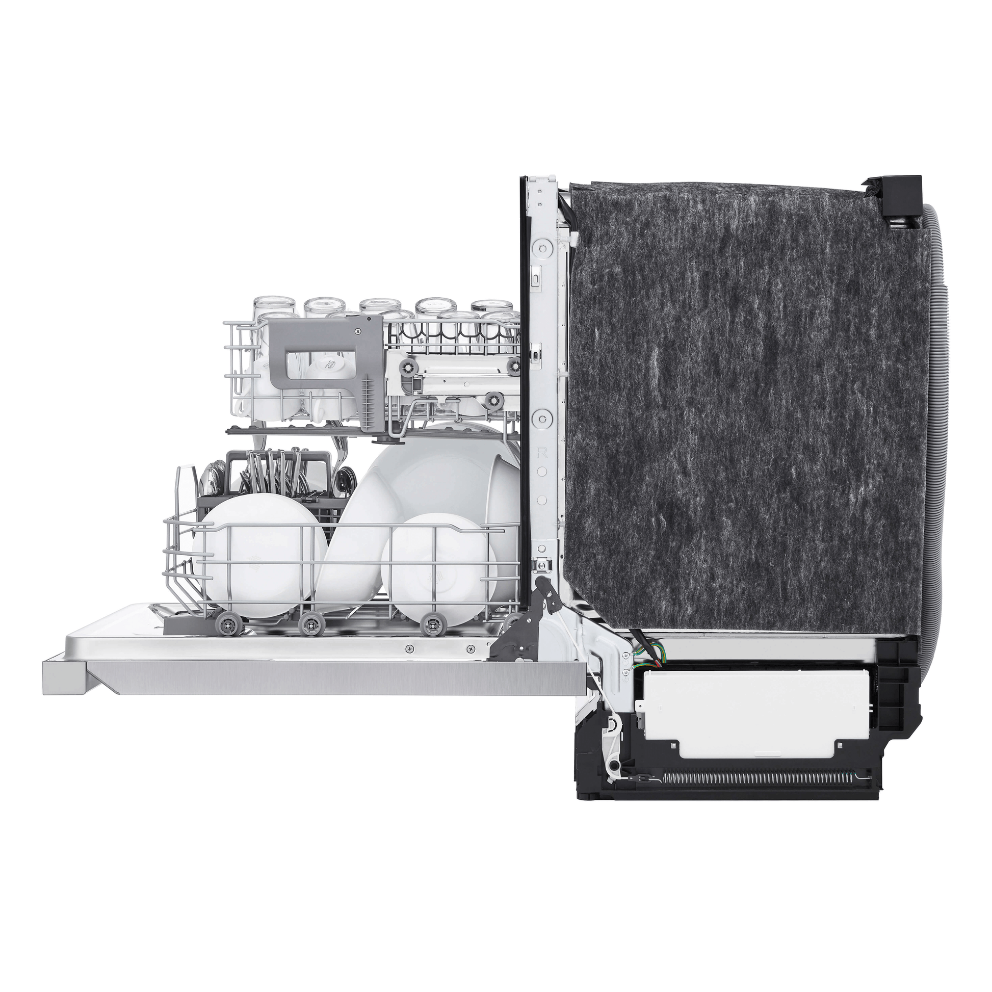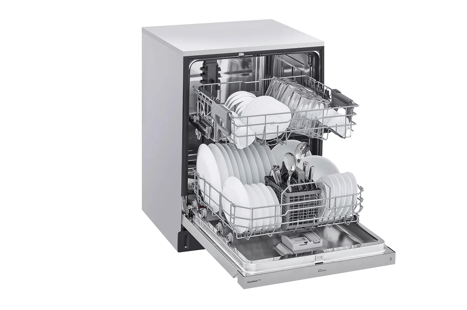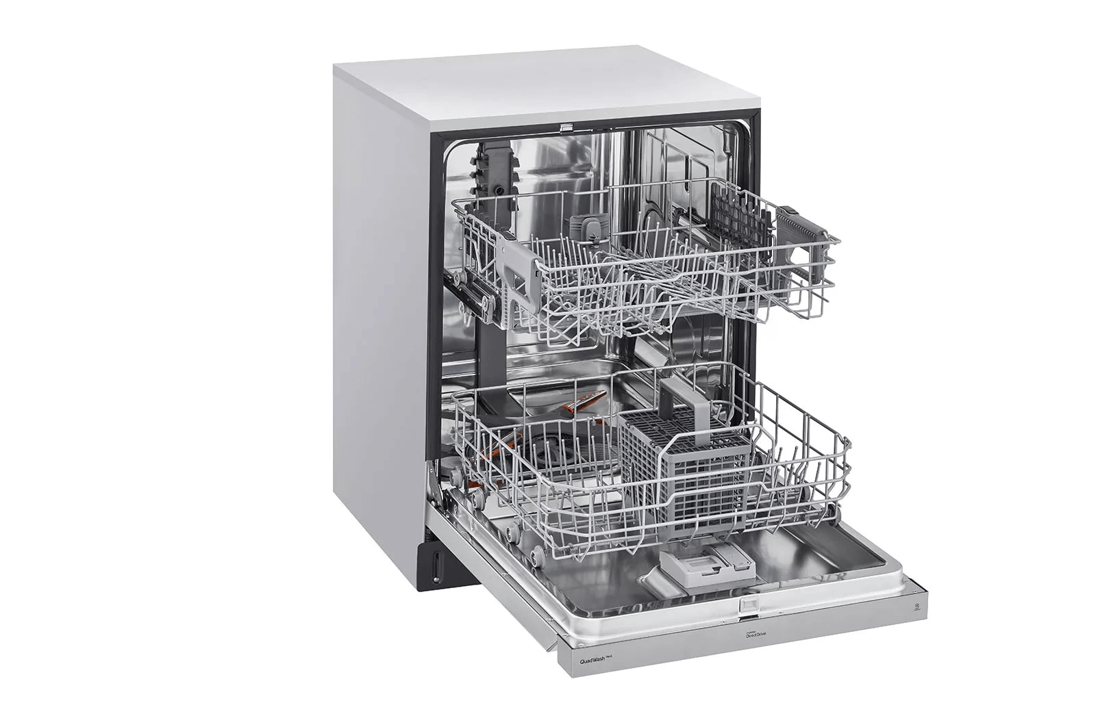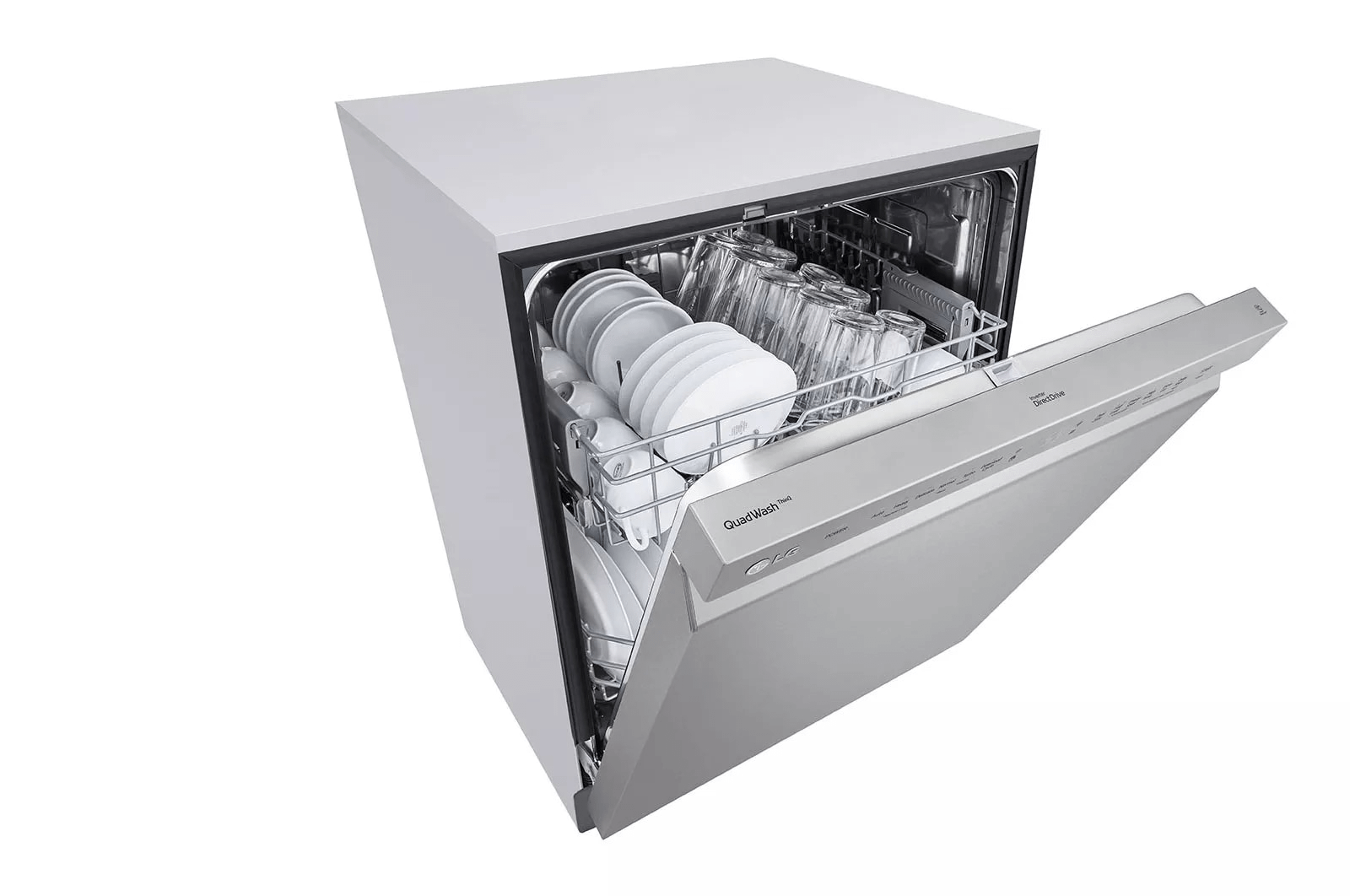 - LG's exclusive QuadWash(TM) technology gets dishes clean the first time. With four spray arms instead of just two, QuadWash(TM) uses Multi-Motion arms that rotate back and forth while spinning to power-clean dishes from multiple angles throughout the entire cycle.
