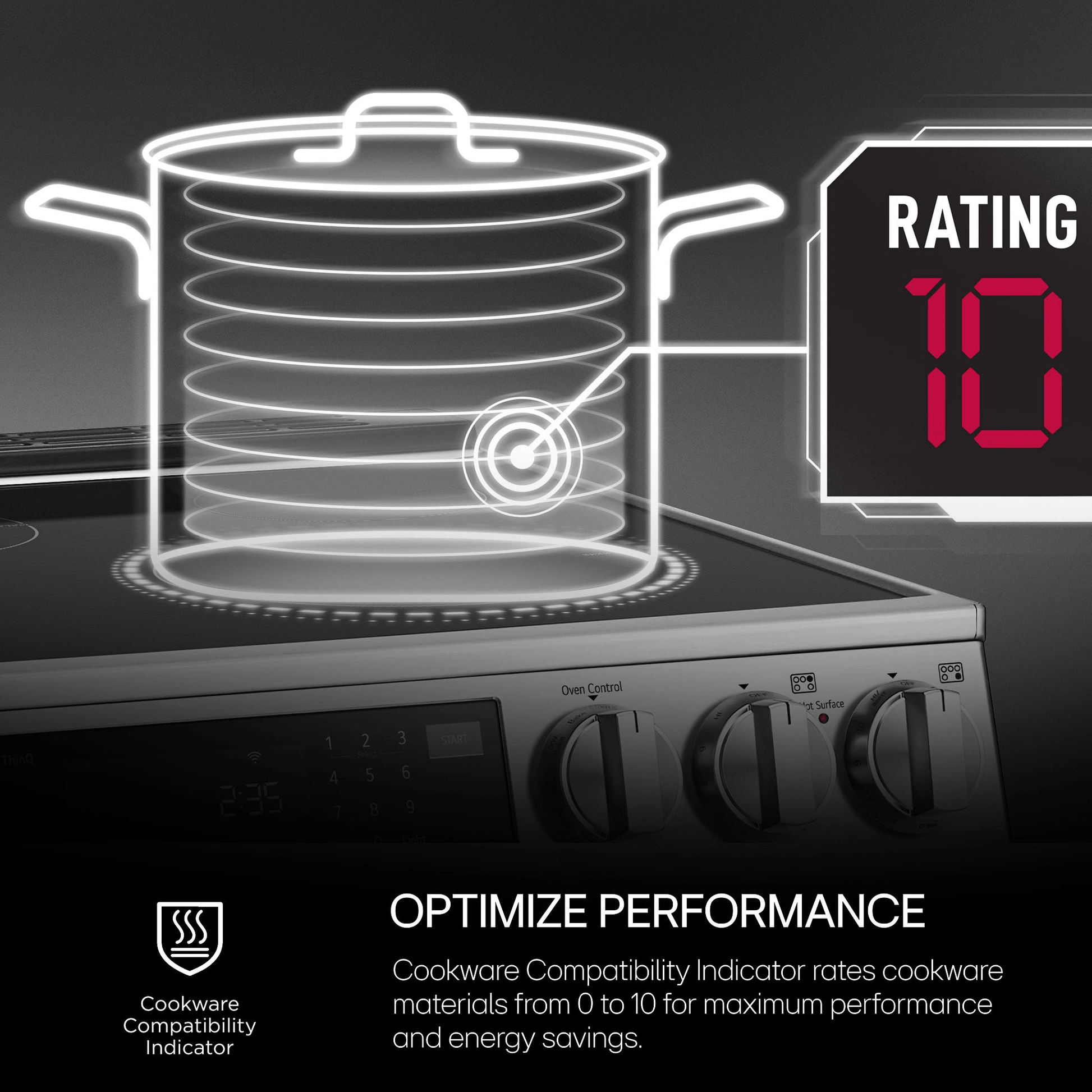 - How well your cookware heats on an induction element depends on several factors, such as the cookware's size, material, and shape of its base. Our cooktop is equipped with a built-in Cookware Compatibility Indicator, which rates cookware and element compatibility on a scale from 0 to 10, to help you optimize the power output and performance of each element and maximize energy efficiency.