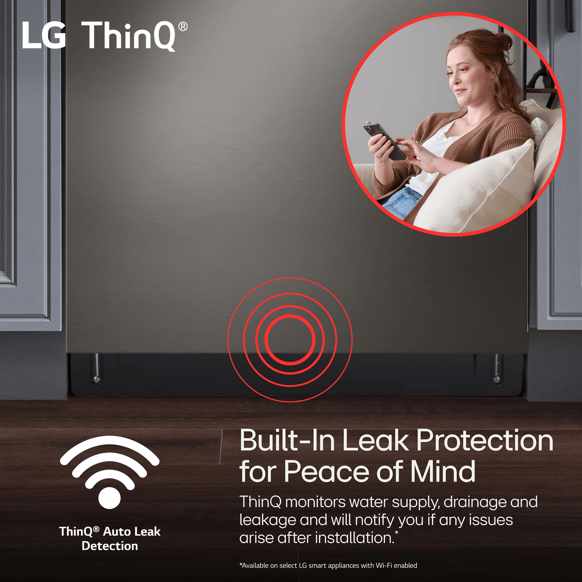 - ThinQ monitors water supply, drainage and leakage and will notify you if any issues arise after installation. Built right in for worry-free operation. Compatible models with ThinQ Care will alert you as soon as there is an issue.