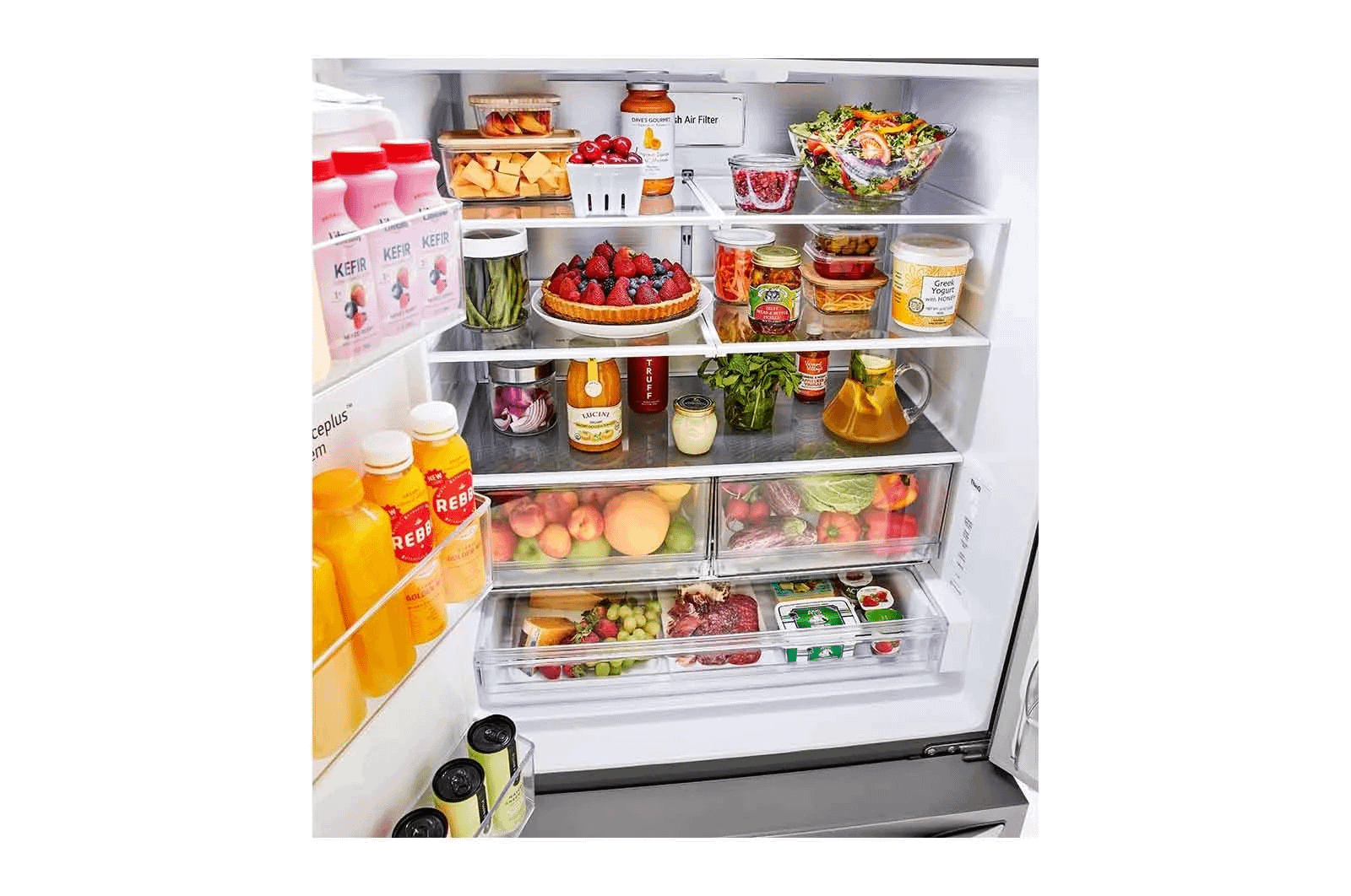 - Located in the top of the fresh food section, the Door Cooling + vent extends the reach of LG's Smart Cooling system. Blasts of cool air reach all areas of the refrigerator-including the door-to help maintain consistent temperatures from top to bottom and help keep all foods fresh and flavorful.